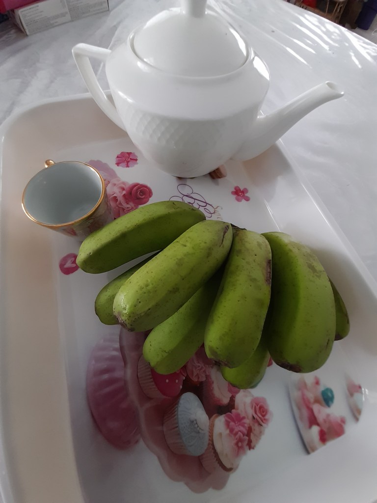 1. Peel the 8 medium green bananas and cut each one small circular shape.