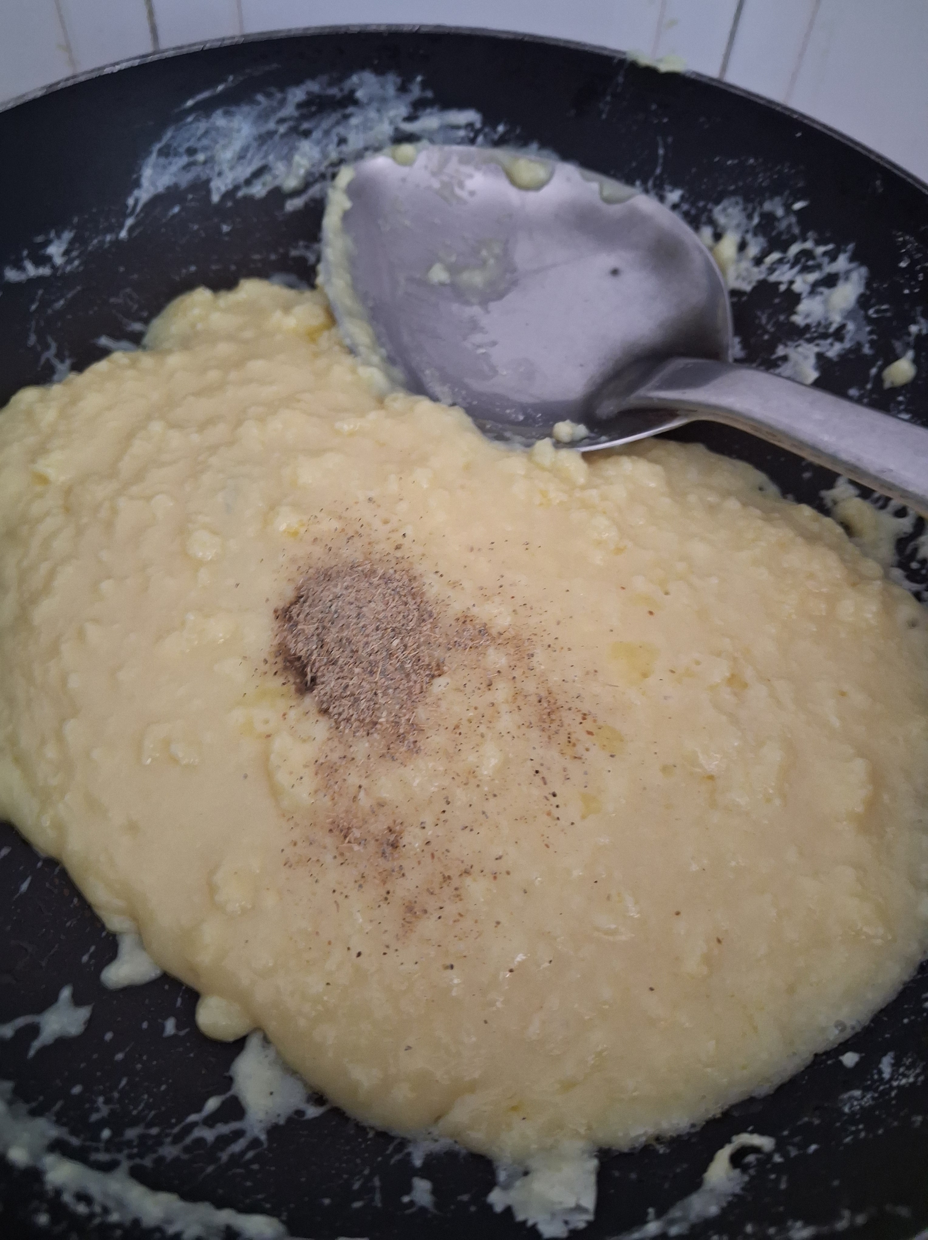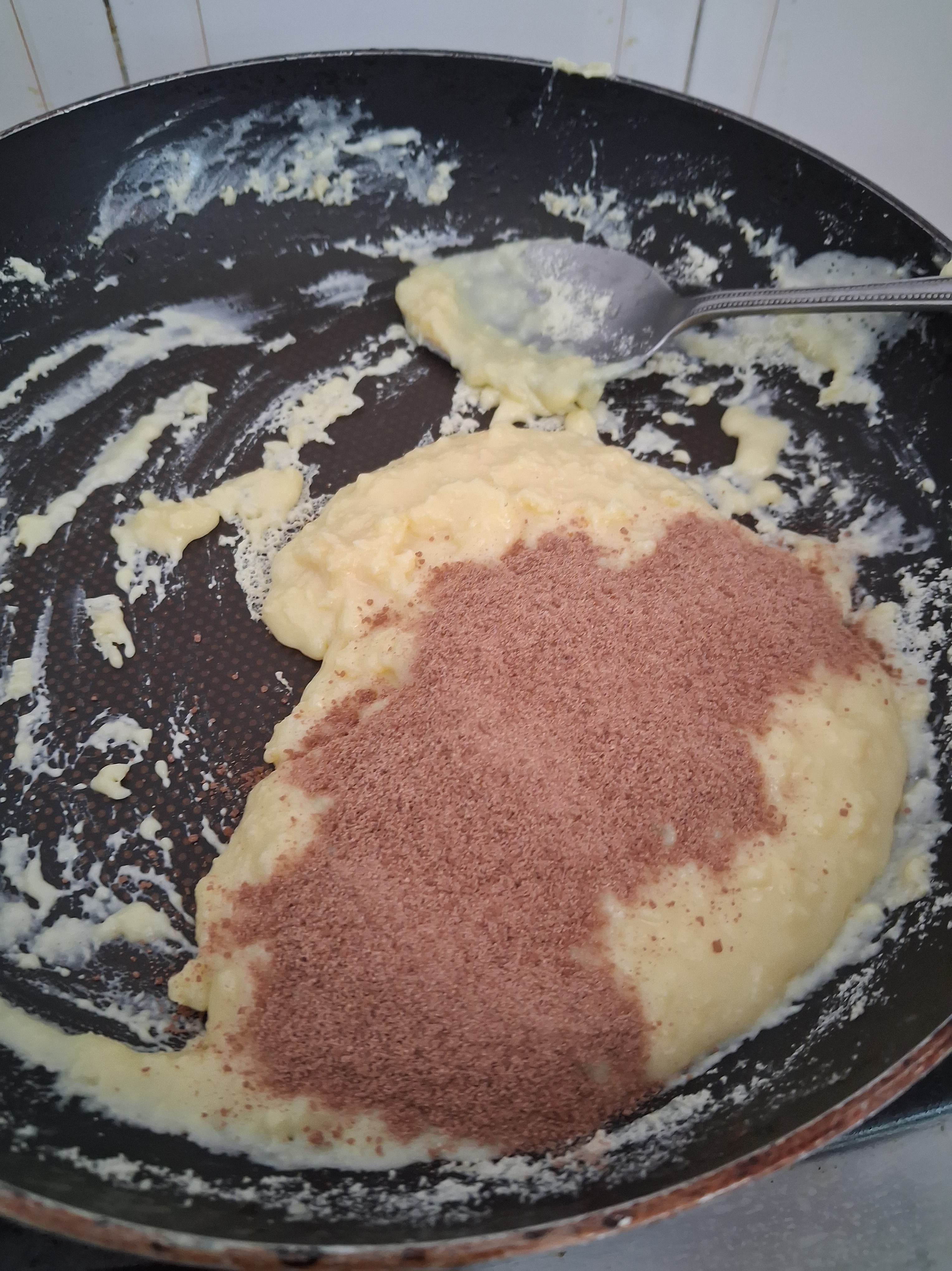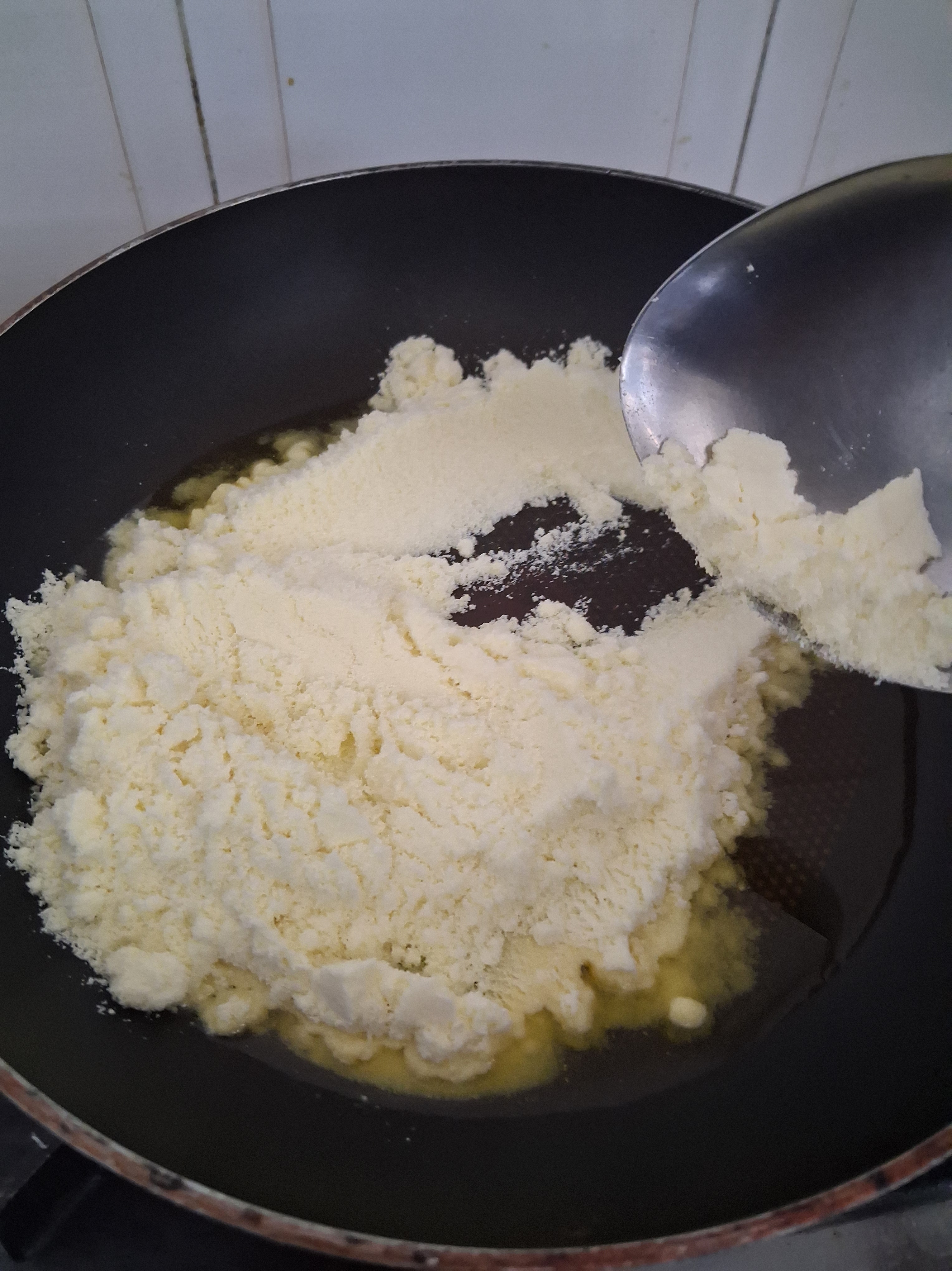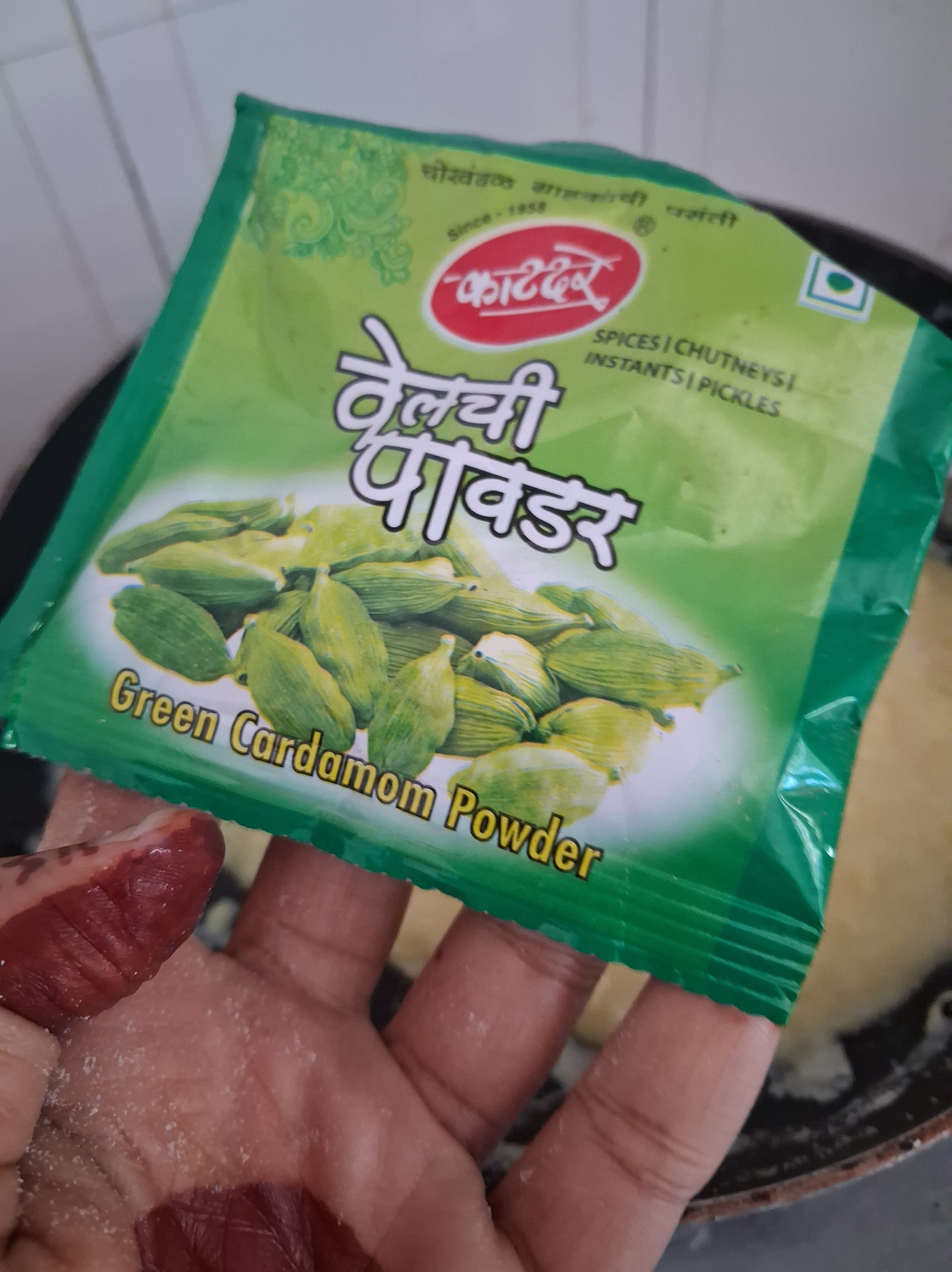 d) Add cardamon powder and mix with a spatula.