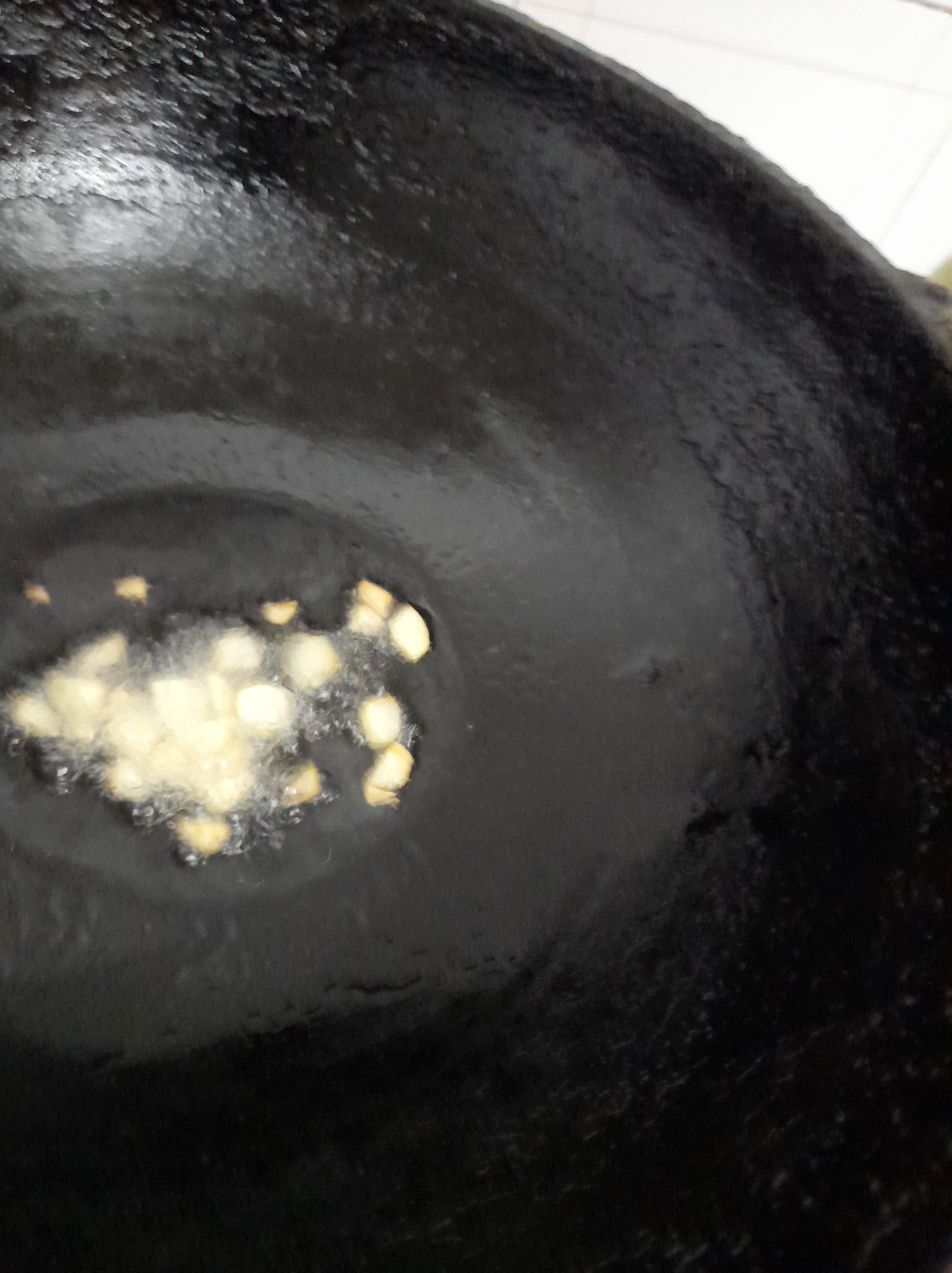 7. Crush some garlic pieces.