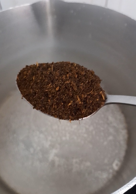 2.Once the water starts to boil, add 1 teaspoon of tea leaves and boil again till water is dark brown.