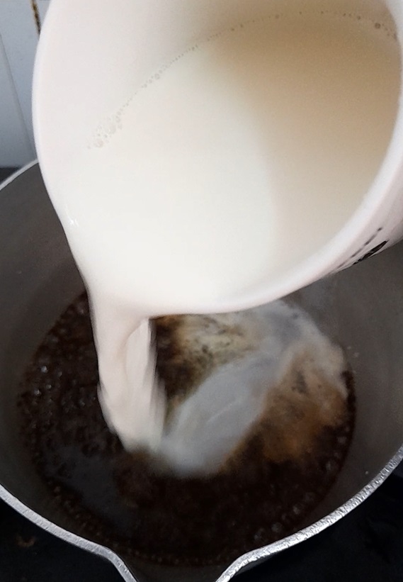 4. Add 3/4 mug of liquid milk. Boil again.