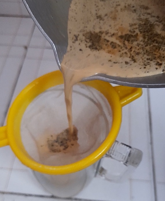 5. Stain the leaves and pour the chai in a mug.