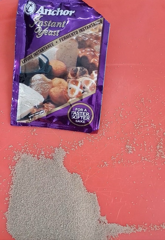 - In a glass of warm water, add 7g of powder yeast and add 1 tbsp of sugar. Let the yeast rest for 3 hours.