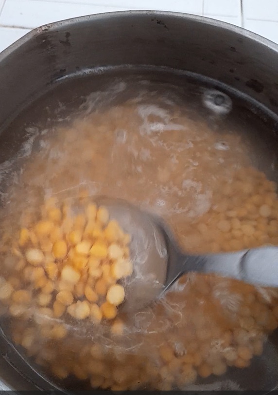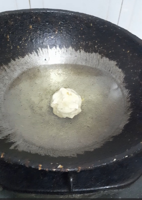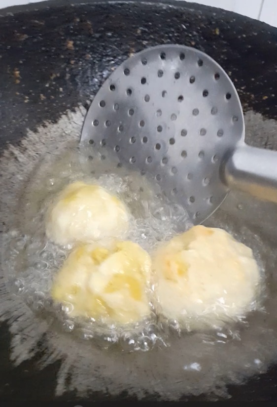 Put oil to heat. Fry and turn each chana puri to fry evenly.