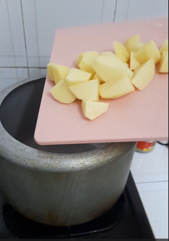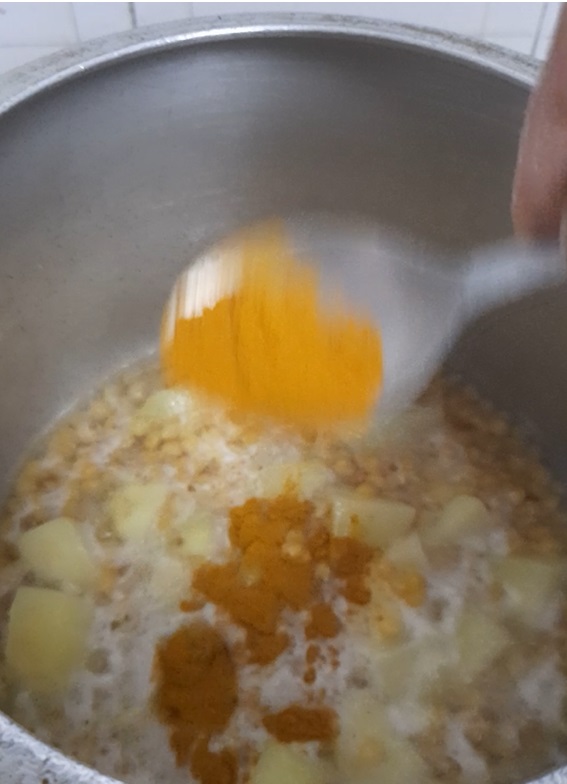1tsp of turmeric powder, 1tsp cumin powder, 1 tsp garam masala , salt, water.