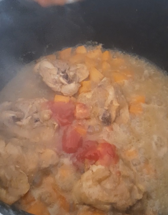 - Add water to 1/2 fill the pan so as to get more sauce with the chicken. Mix.
