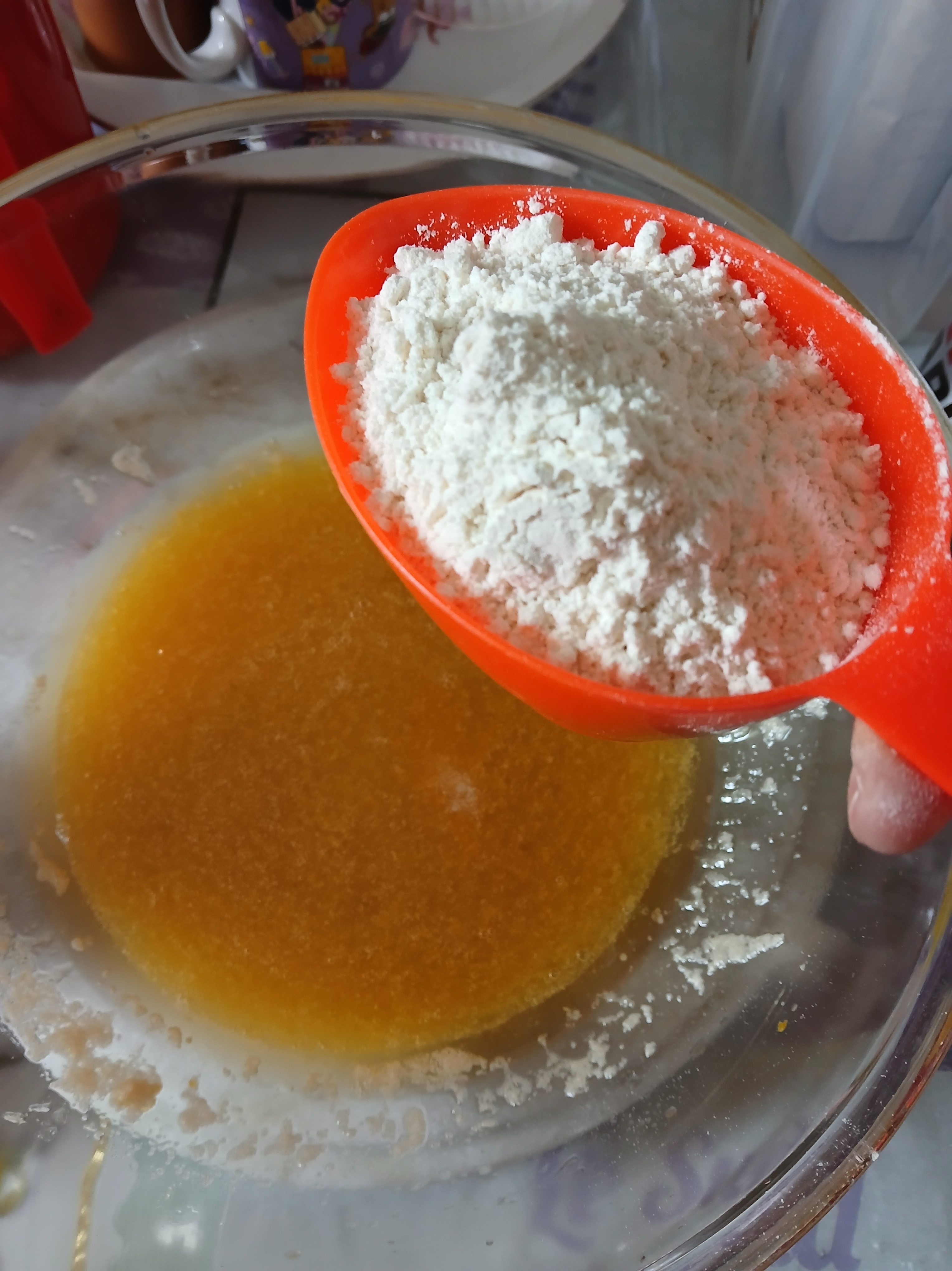 - Add flour, baking powder, ginger powder, cinnamon powder, pinch of salt. Continue to add flour if necessary to make a soft dough.
