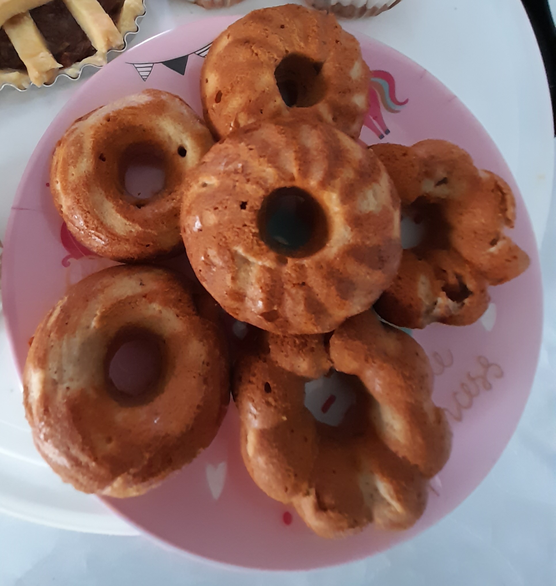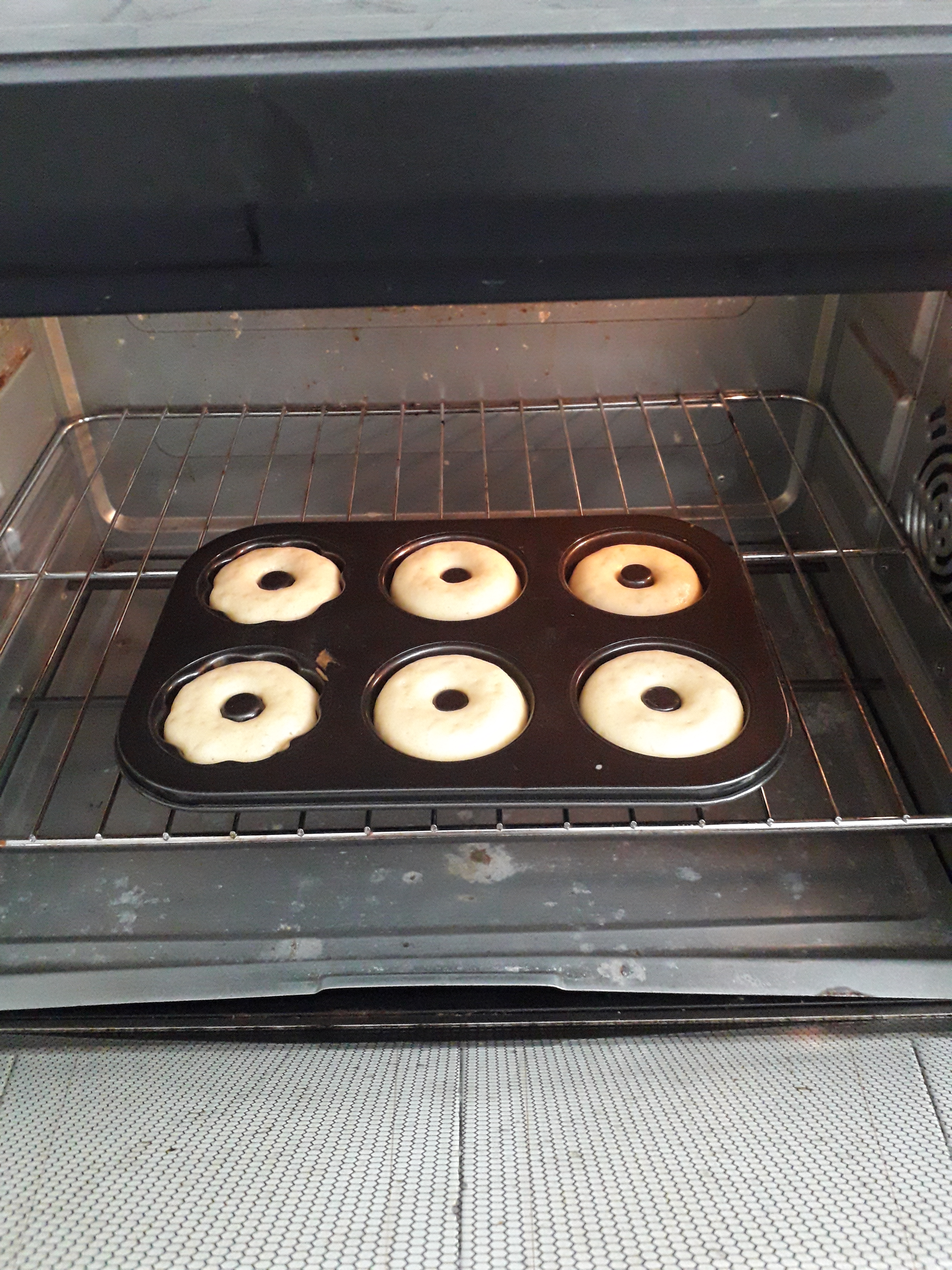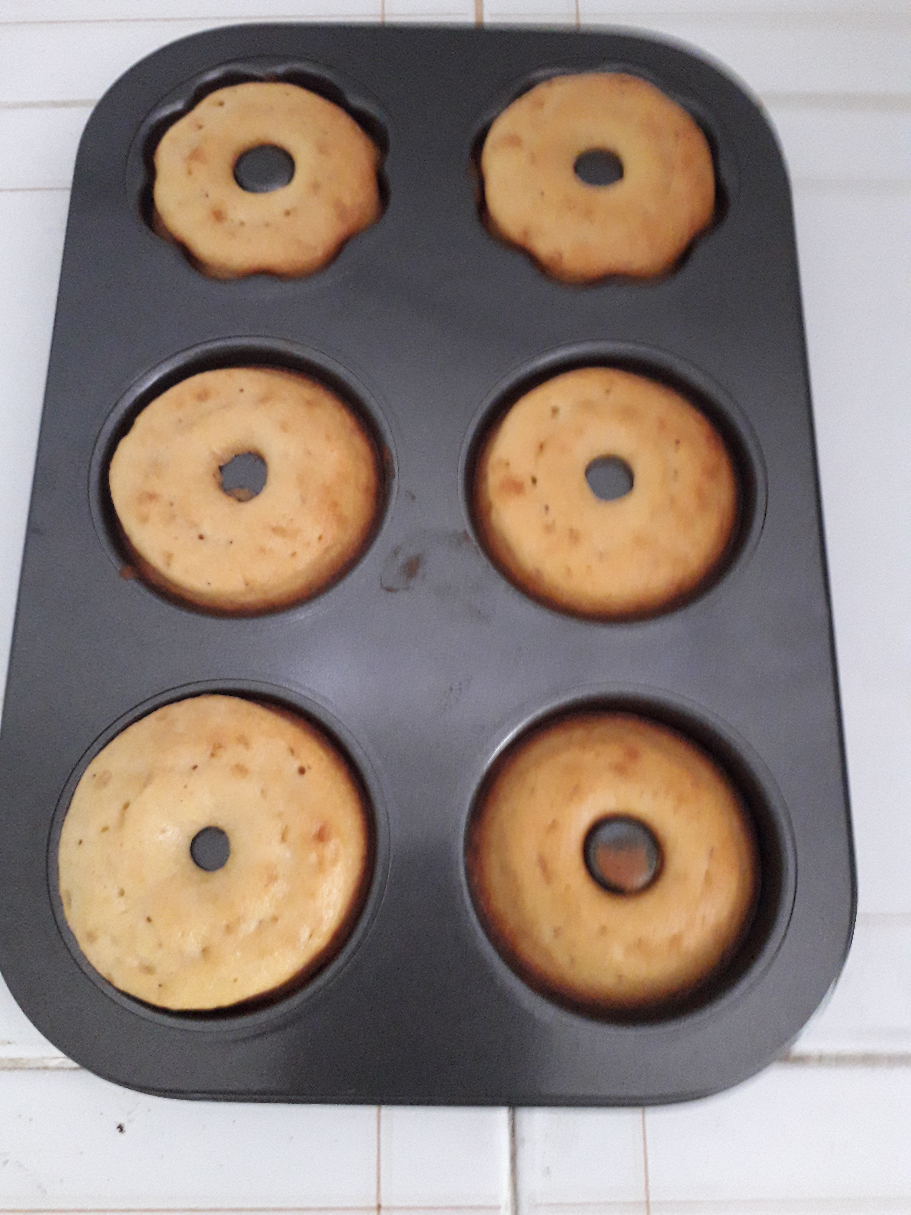 6. Bake the doughnuts till golden brown at 180 degrees for 15 minutes. Check the baking till the stick inserted comes out clean.