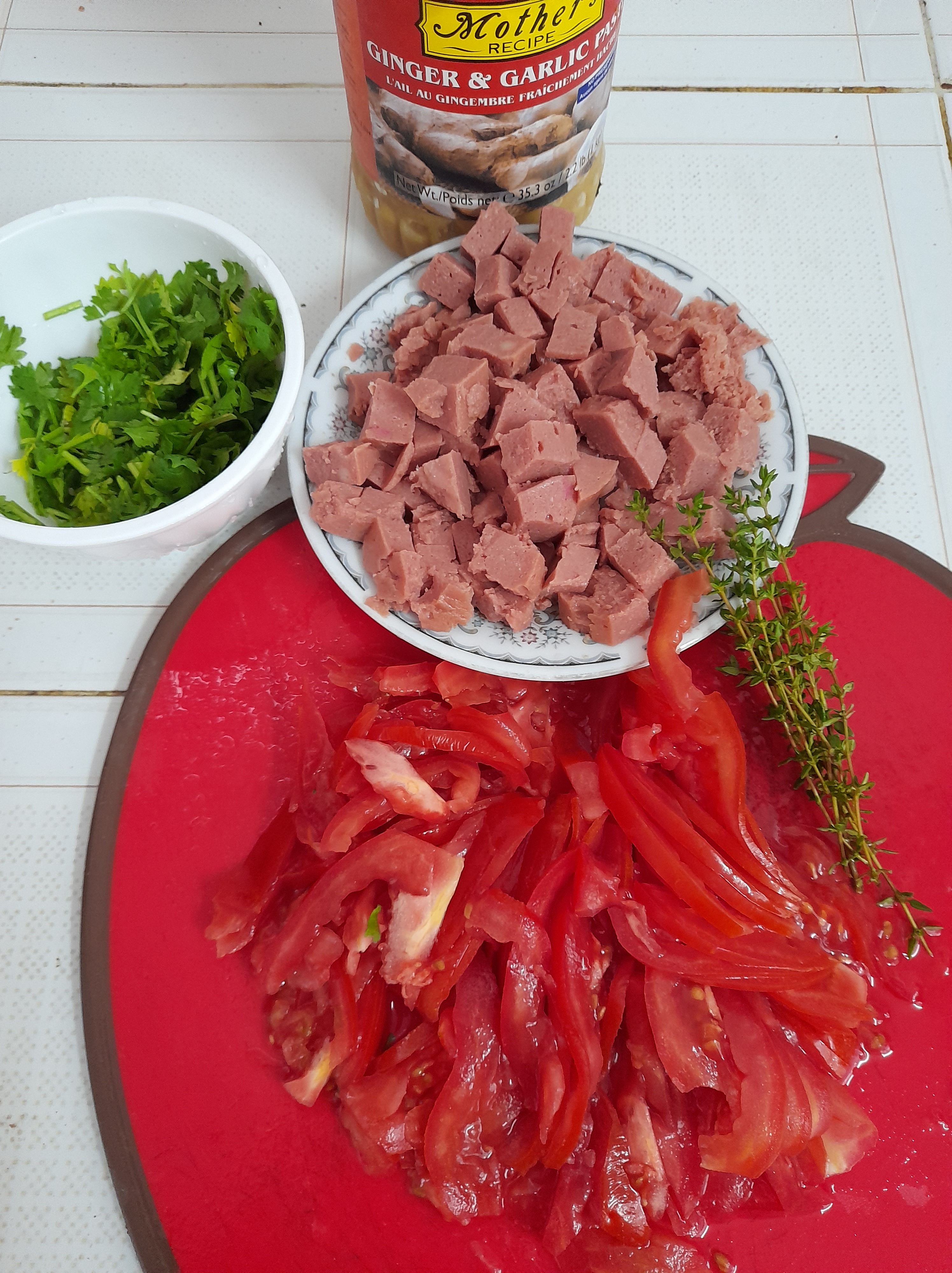 2. Dice the corn mutton in small squares and fry them in one tbsp oil in a pan.