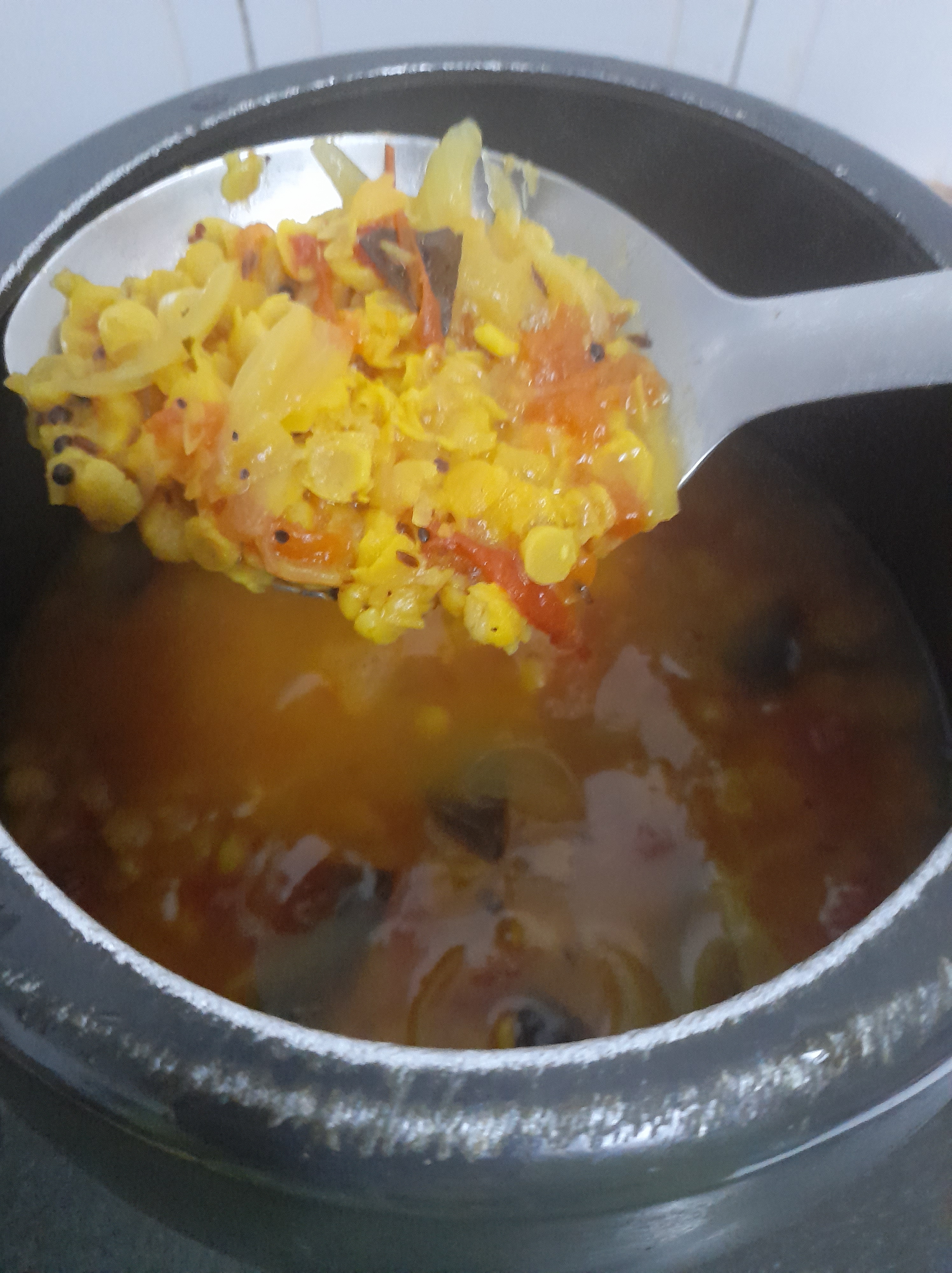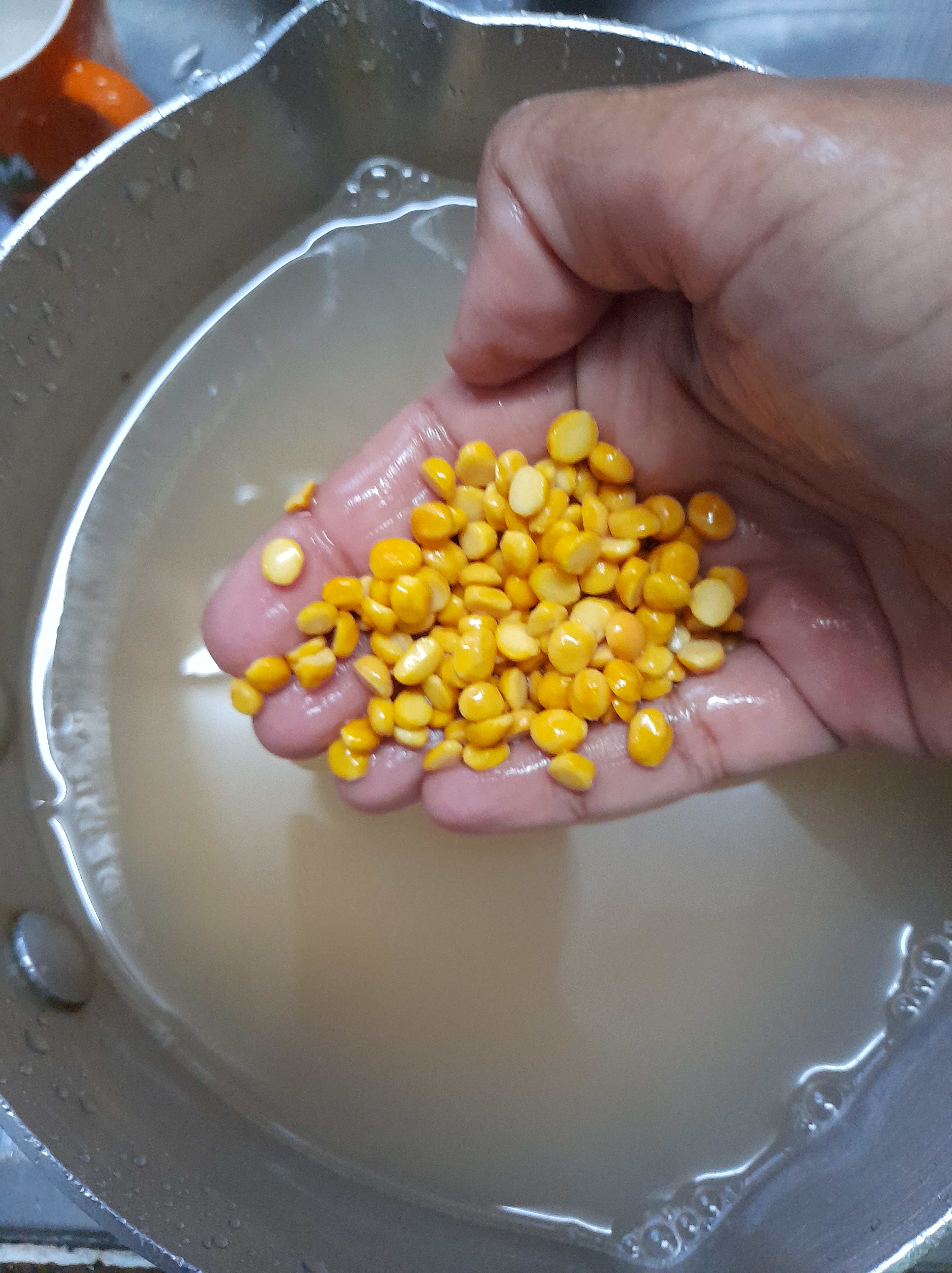 - Remove any impurities from the dhall. Wash thoroughly the dhall till the water is clear. Then drain the water and reserve.