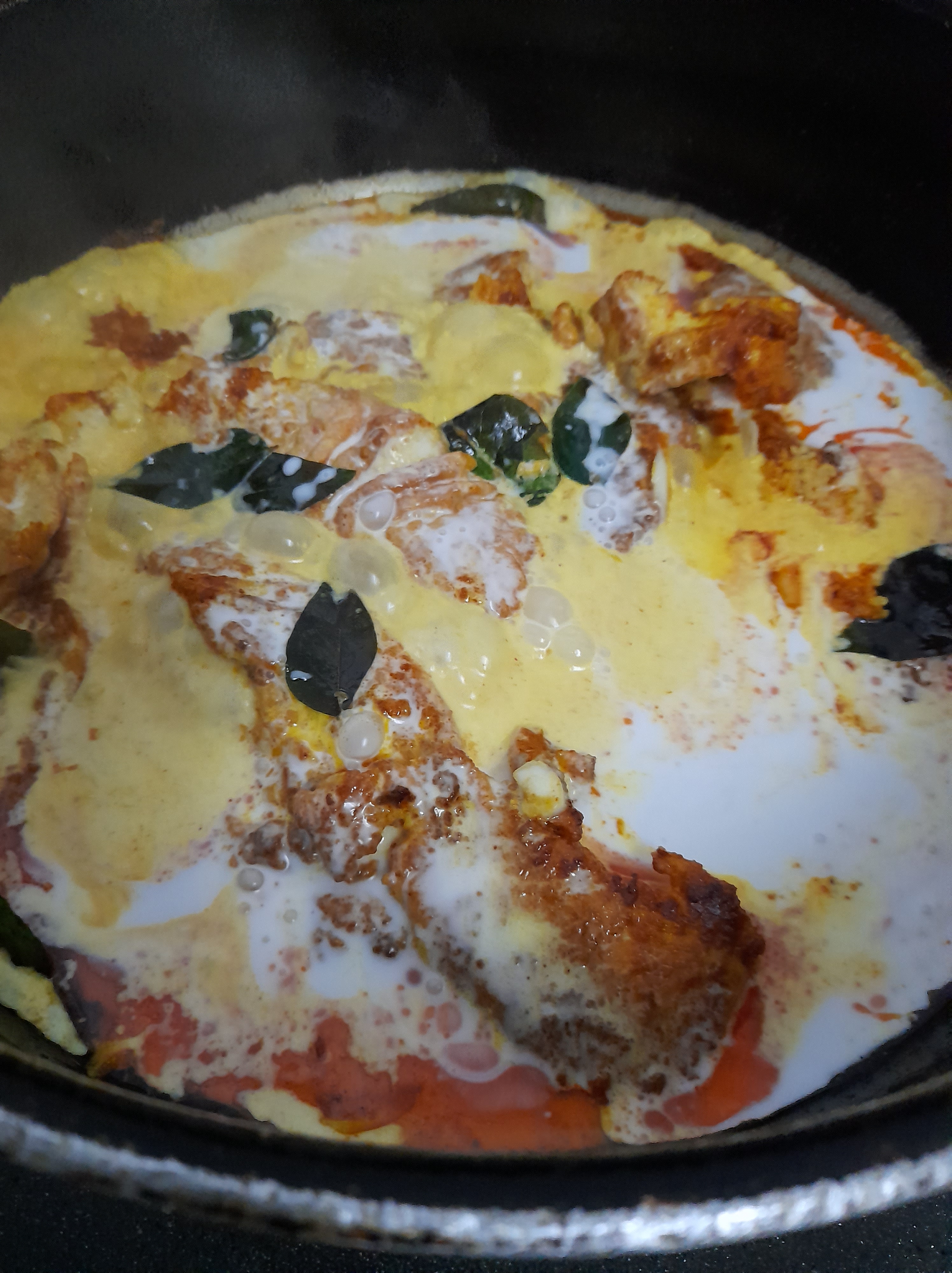 - Add fish. Fry in medium heat.