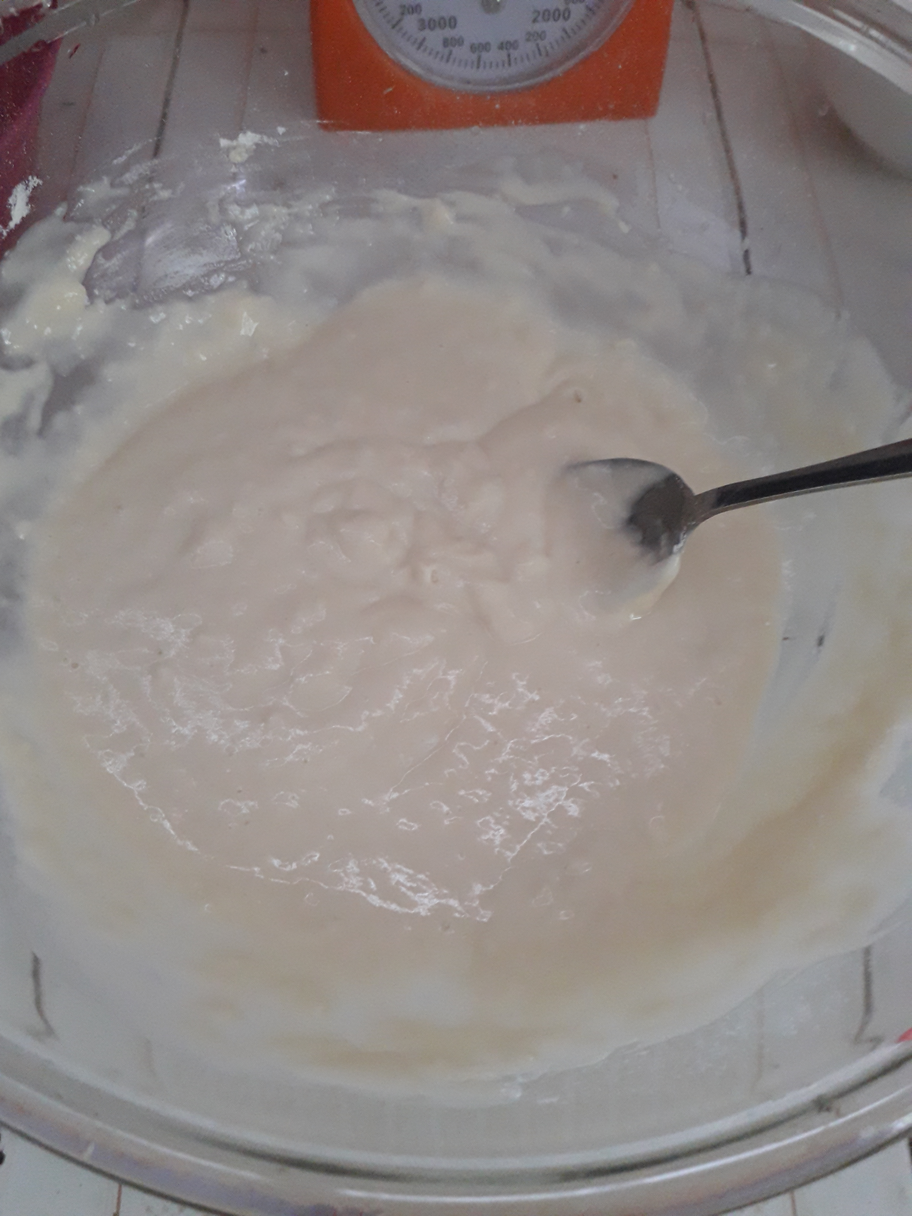 - Add 3 teaspoon of baking powder and 3 teaspoon of water in a small bowl. Then add to the flour/sugar/water mixture. Stir continuously to incorporate air.