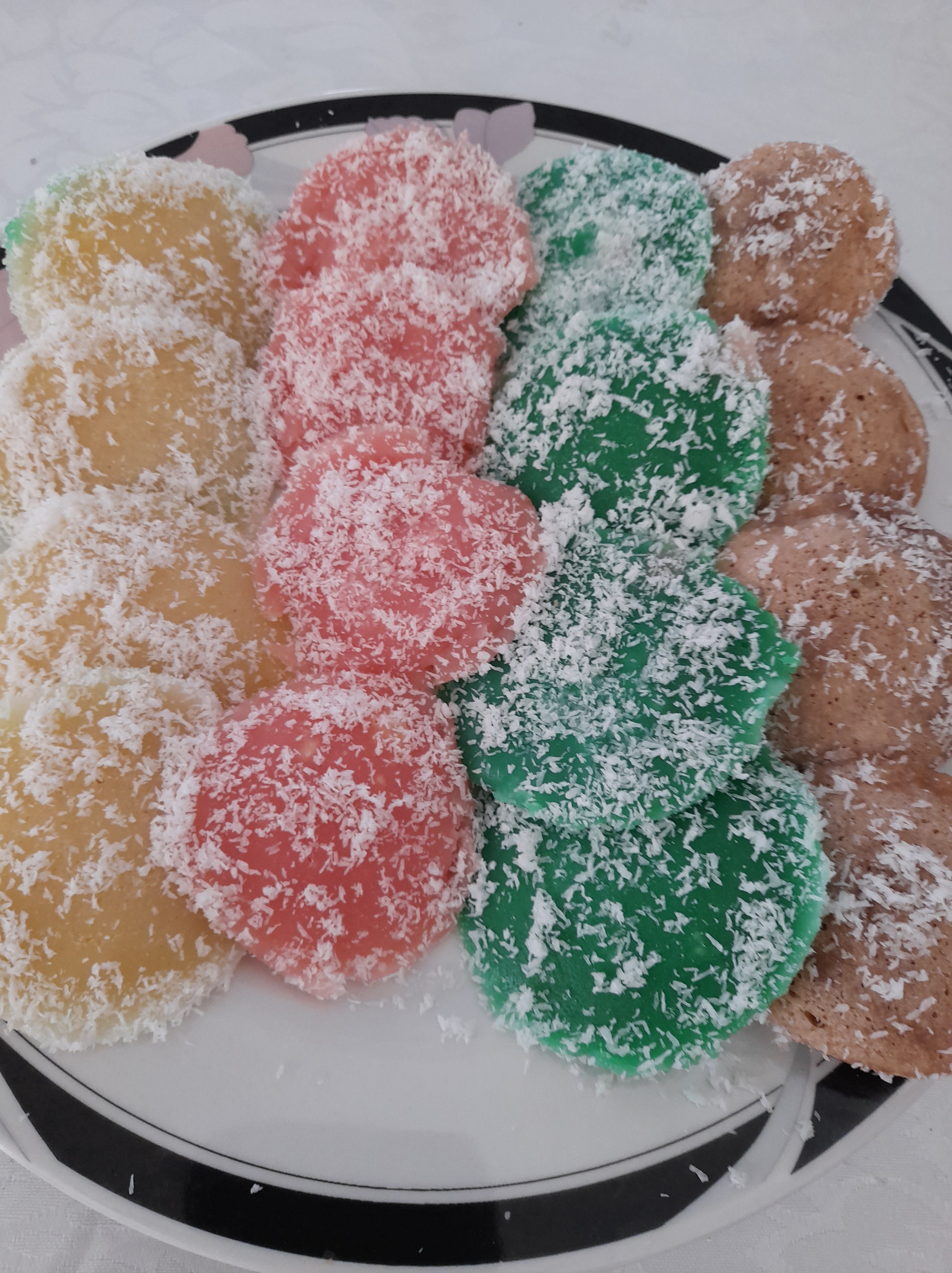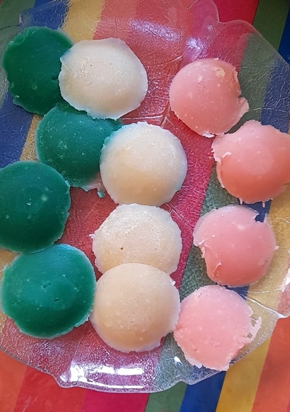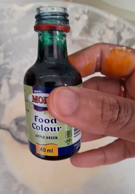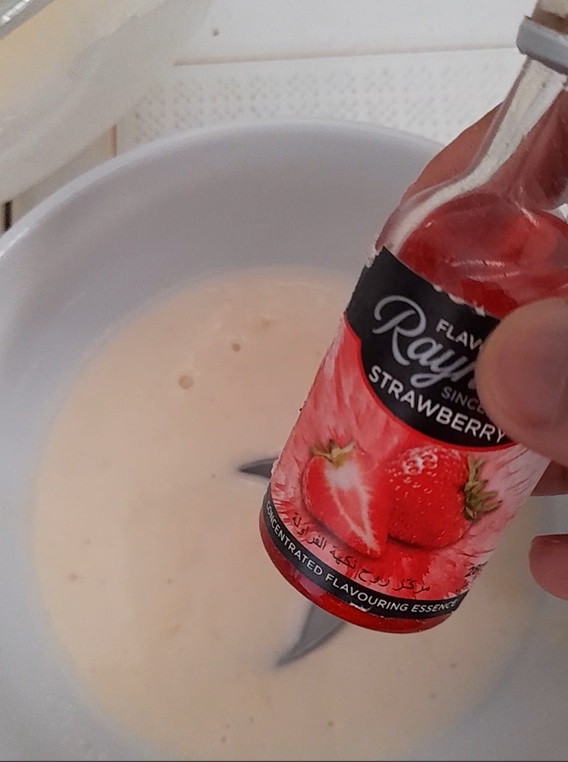 Repeat the same procedure but instead of adding vanilla essence and cocoa powder, add strawberry flavouring, vanilla essence, almond flavouring/colouring to the running batter.