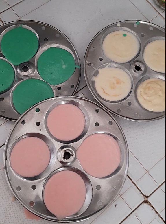 - Grease idli moulds and add runny batter.