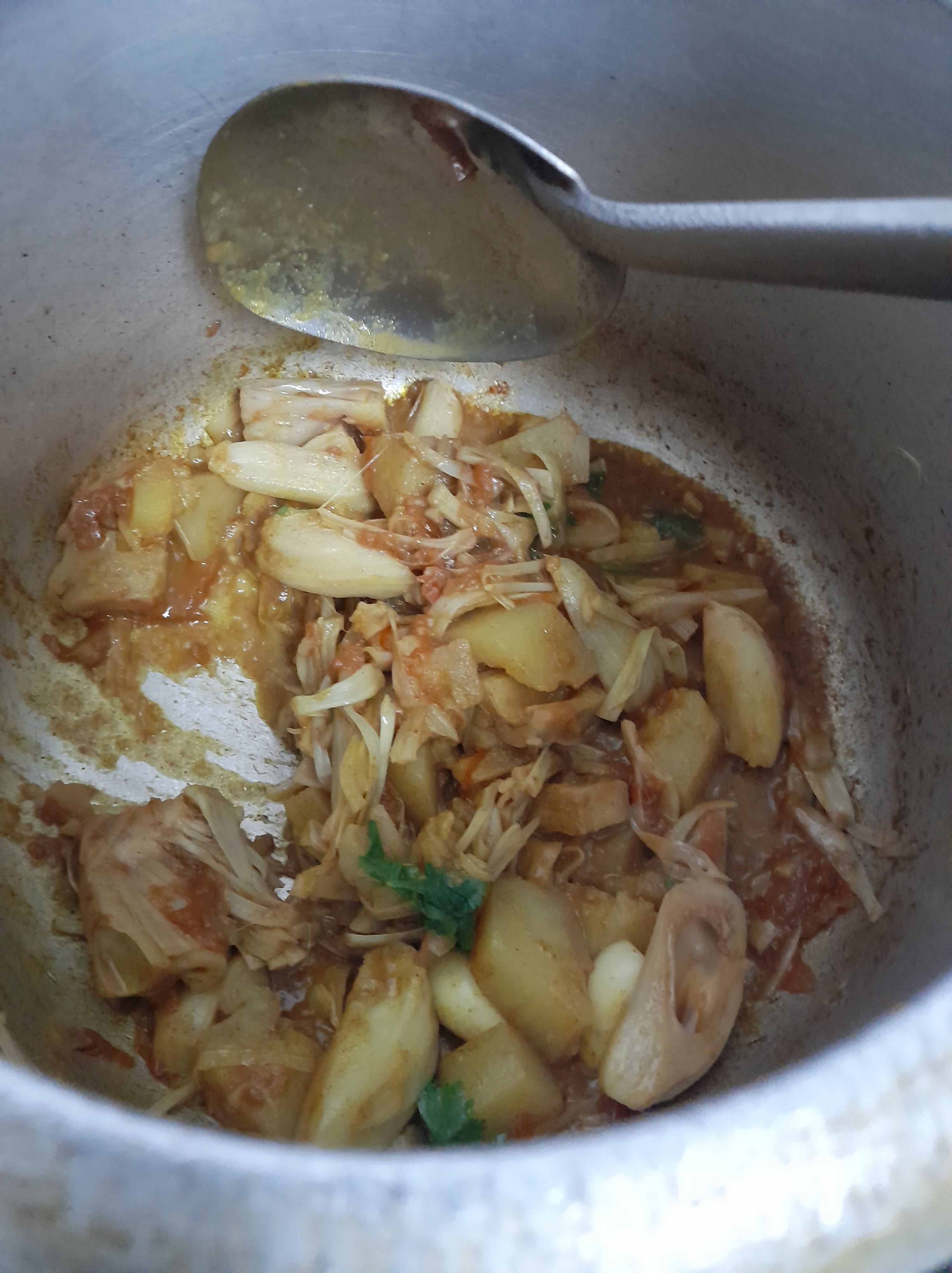 - Close the lid of pressure cooker and allow to cook in medium flame.