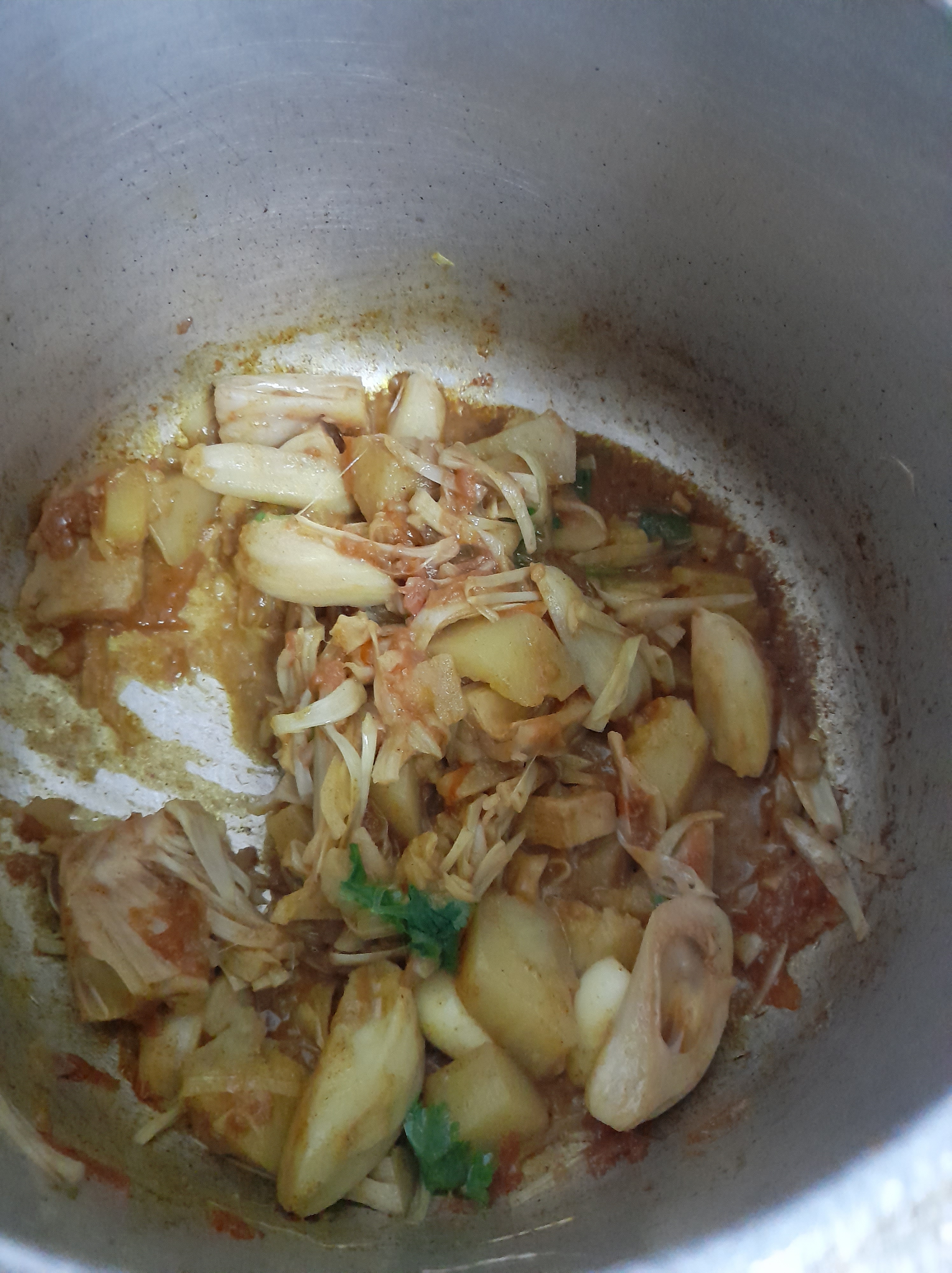 - Cut two large pieces of a whole jackfruit. Wash thoroughly.