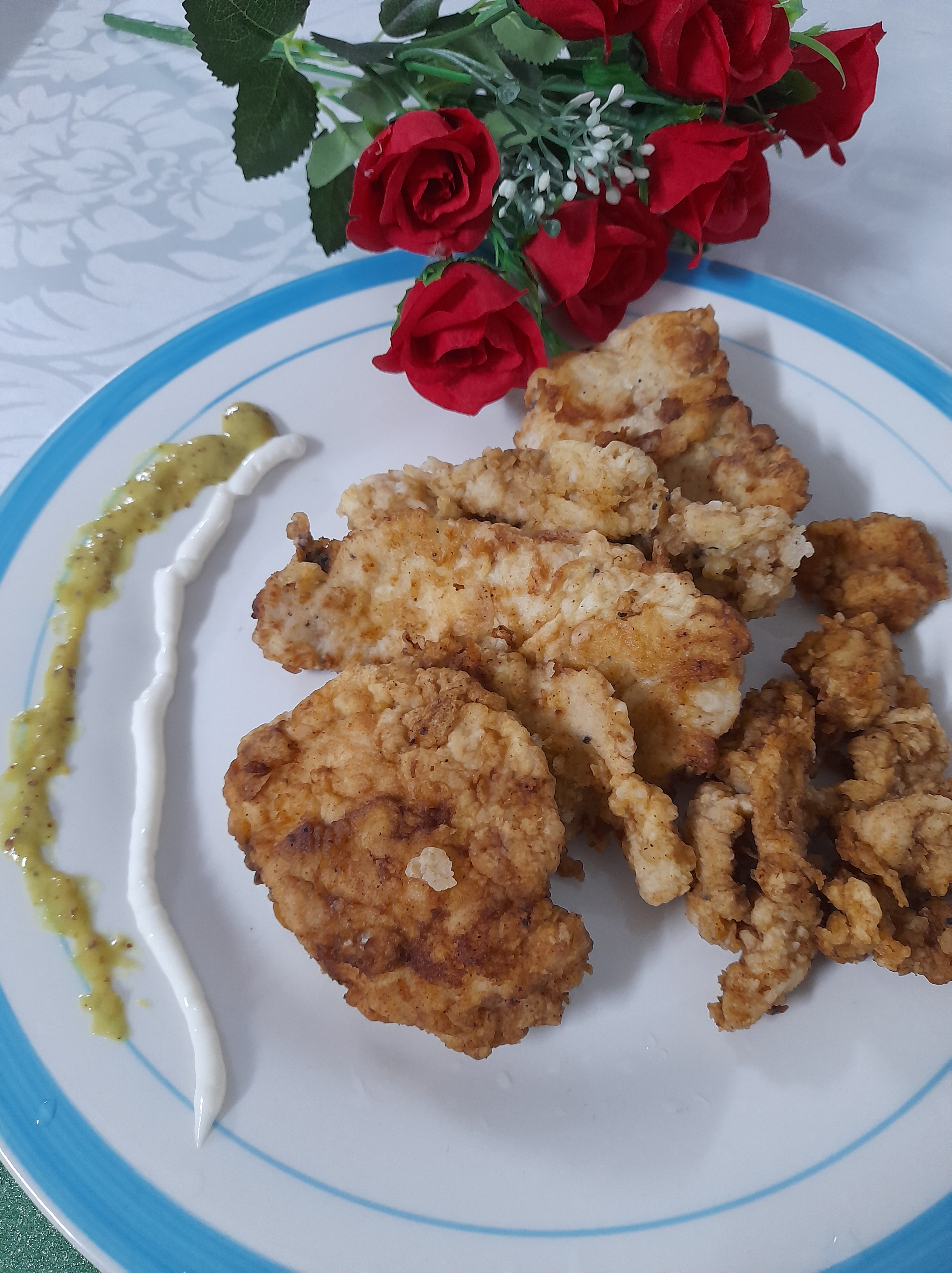 - In another bowl, put 2 cups of white flour, 3 tablespoon of cornflour, 2 -3 tablespoon of paprika powder and salt. Mix everything.