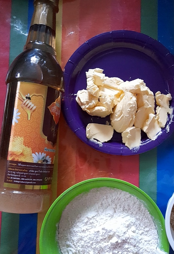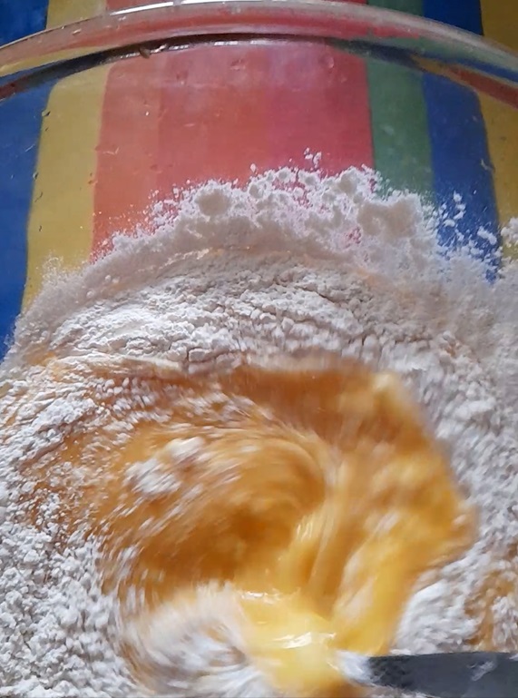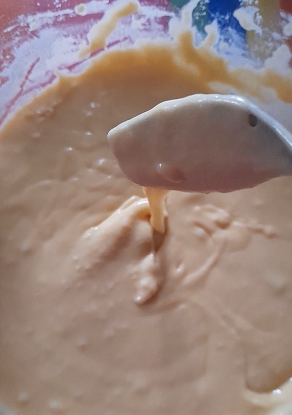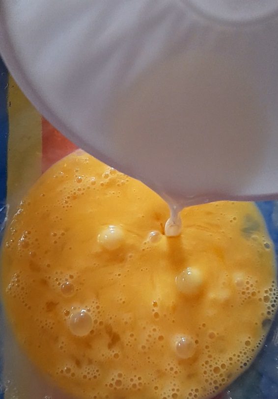 - Add 50g honey. Whisk. It will be soft and runny batter.