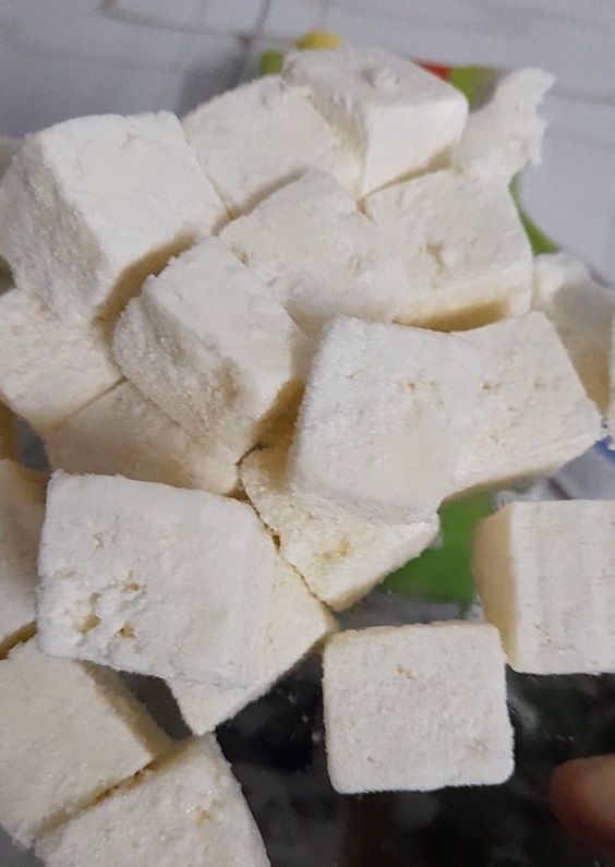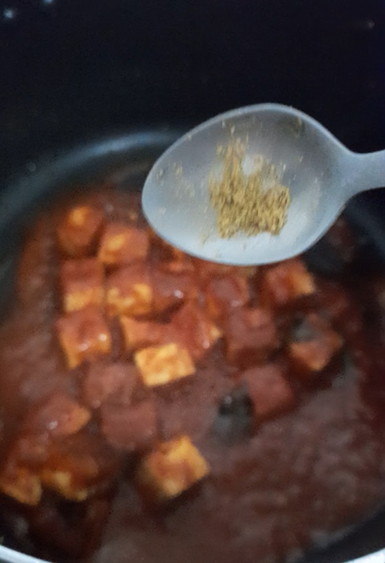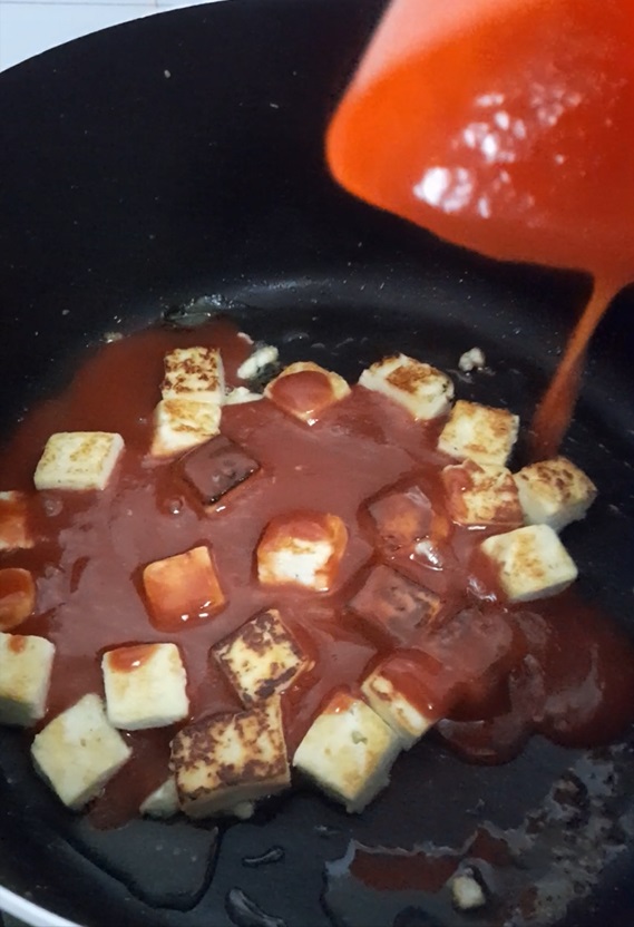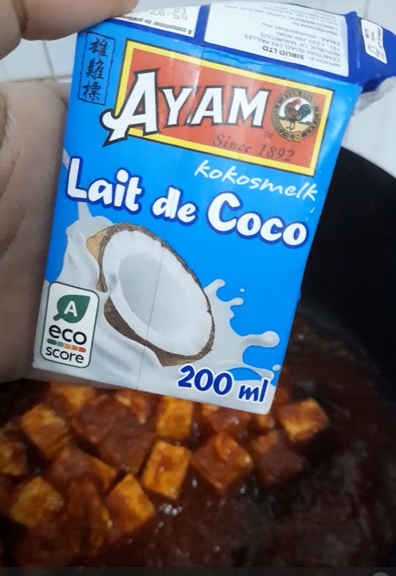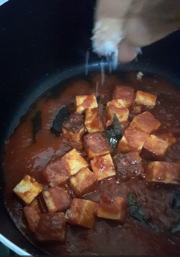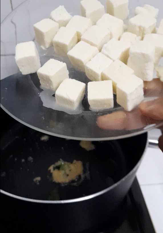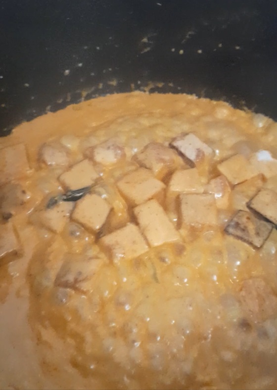 8. Pour 200 ml coconut milk in the malai paneer mixture. Mix.