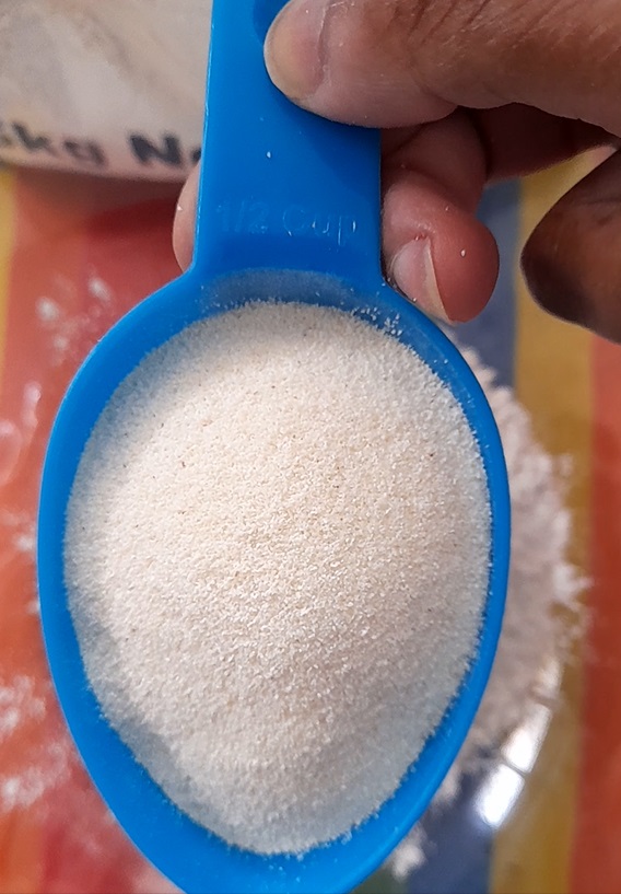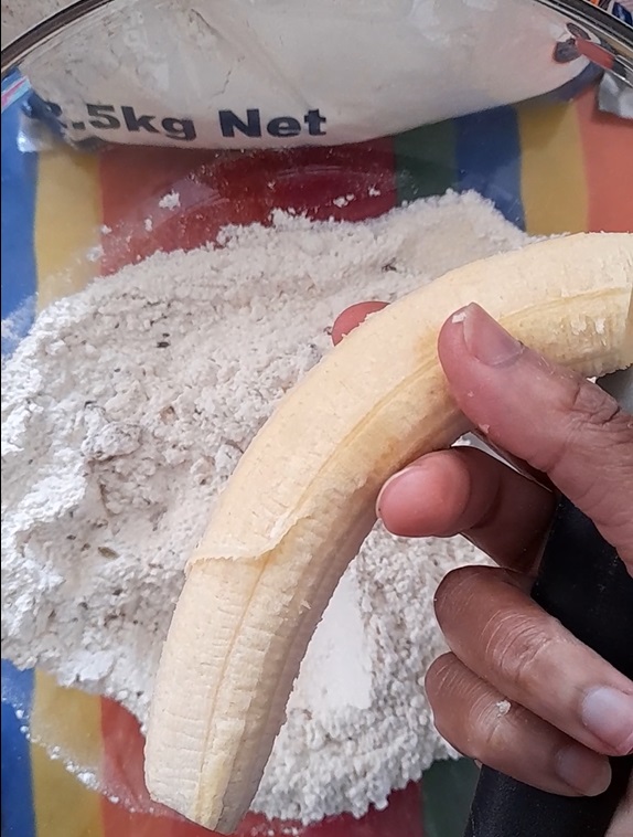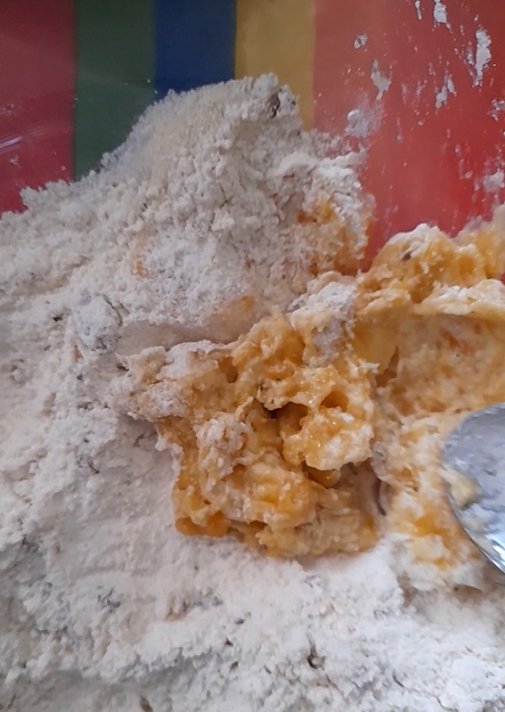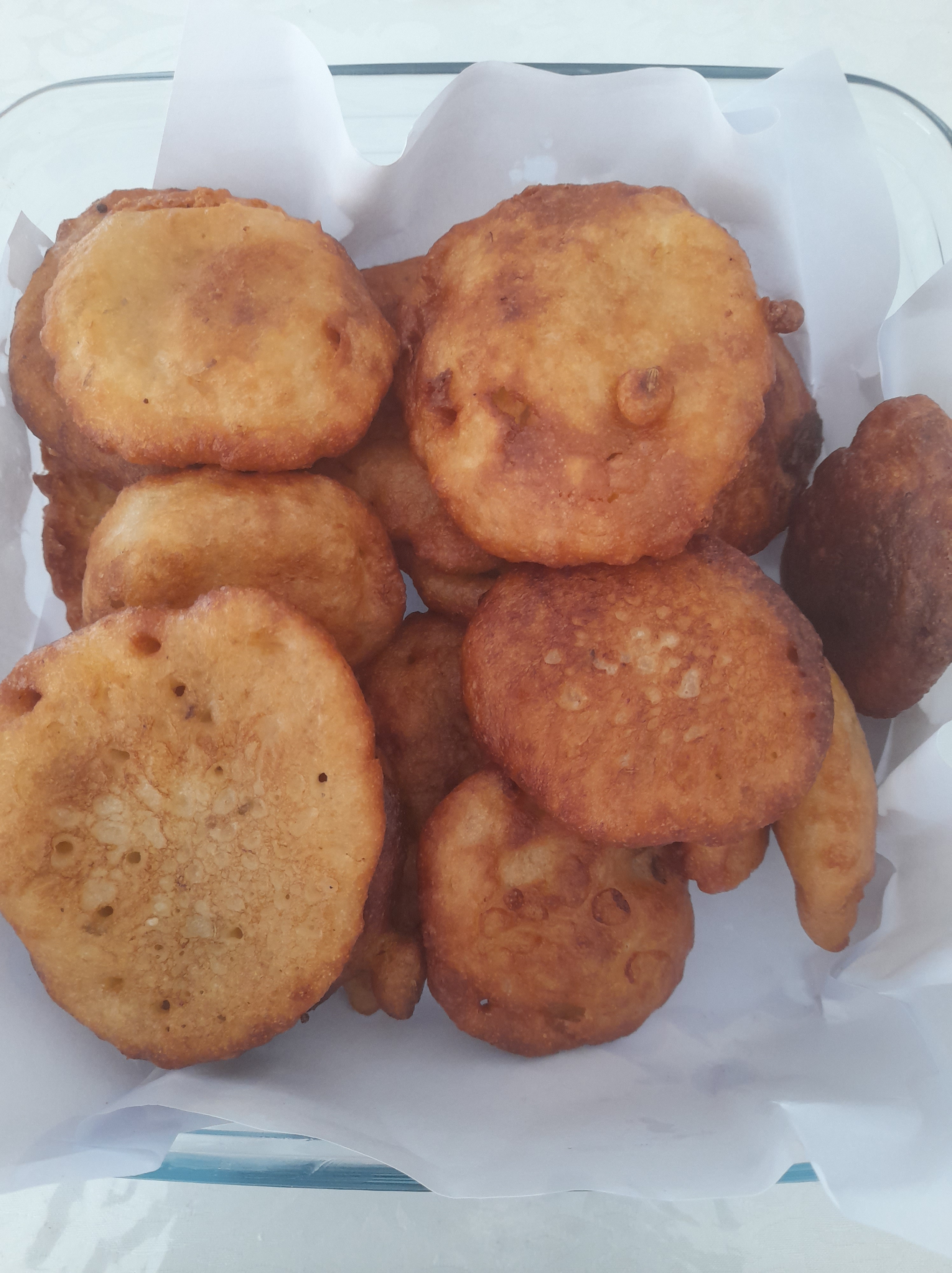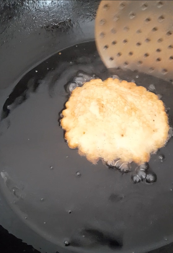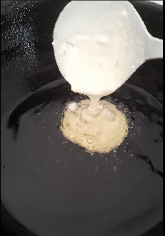 - Using a laddle, take a portion of the batter. Put in oil to fry.