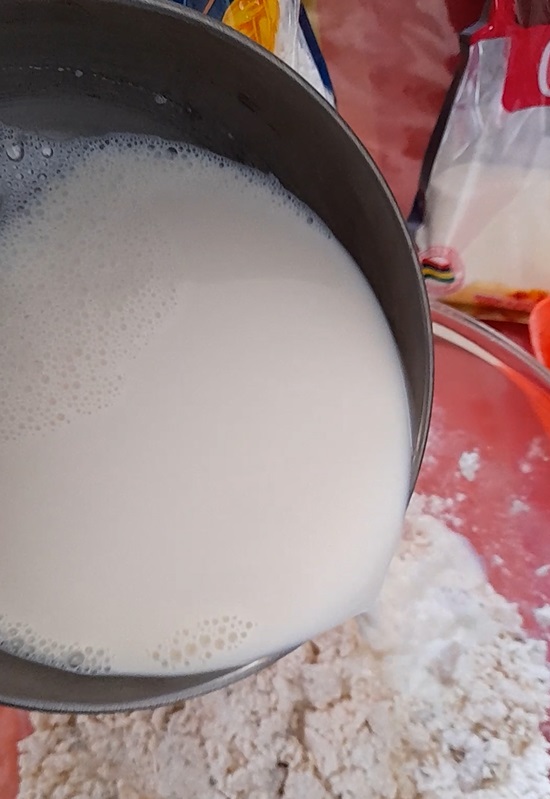 - Add 600 ml lukewarm milk. Batter should be runny.