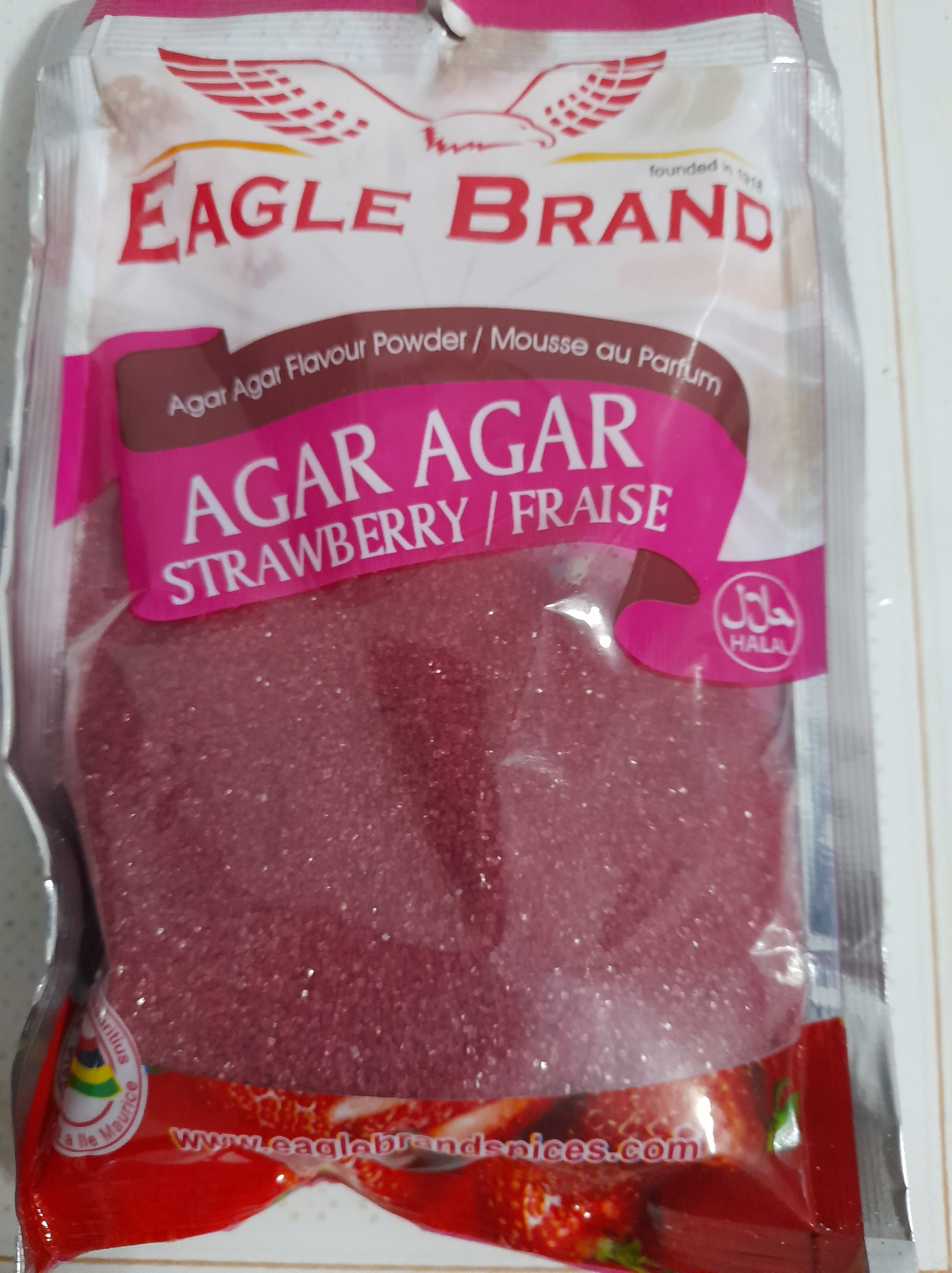 - Then in another pan, add 500 ml of water. Dissolve the strawberry agar agar powder with a spoon. Add liquid milk to your taste and bring the mixture to boil.