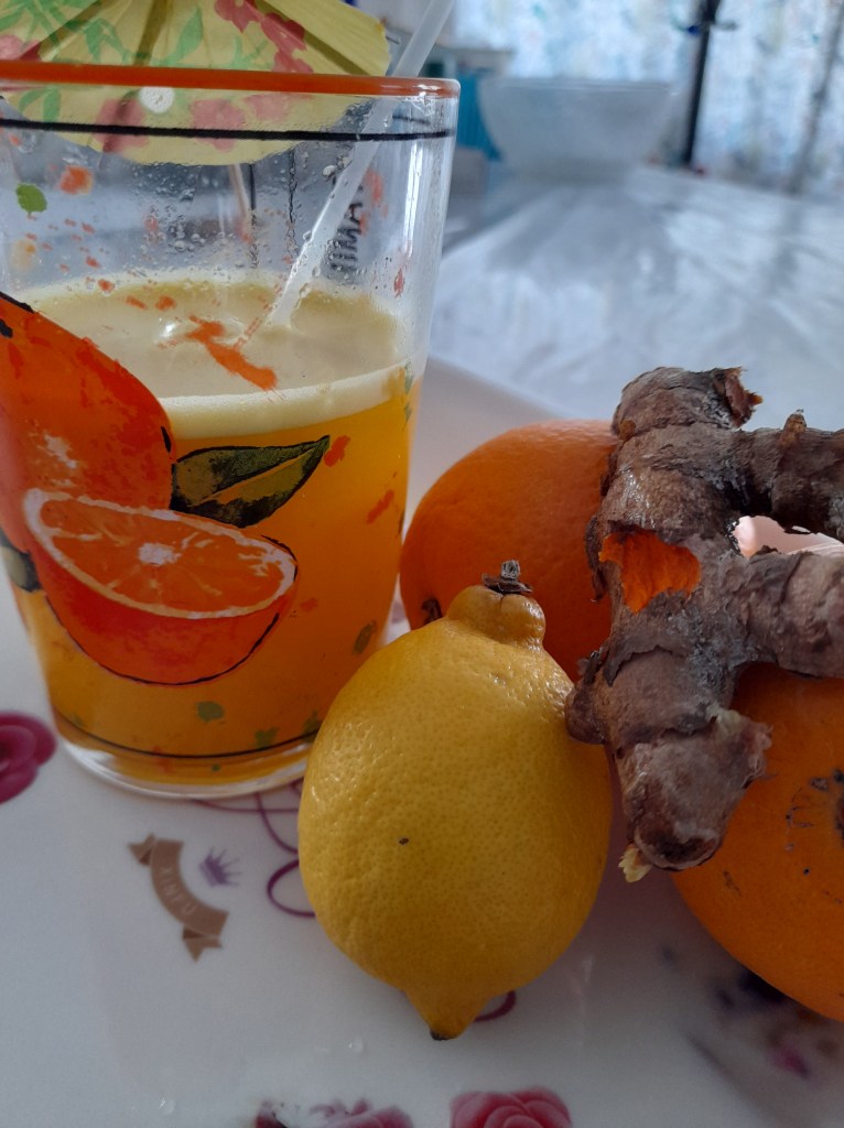 3.In a juicer, add the halves of oranges, lemon and 2-3 pieces of turmeric.