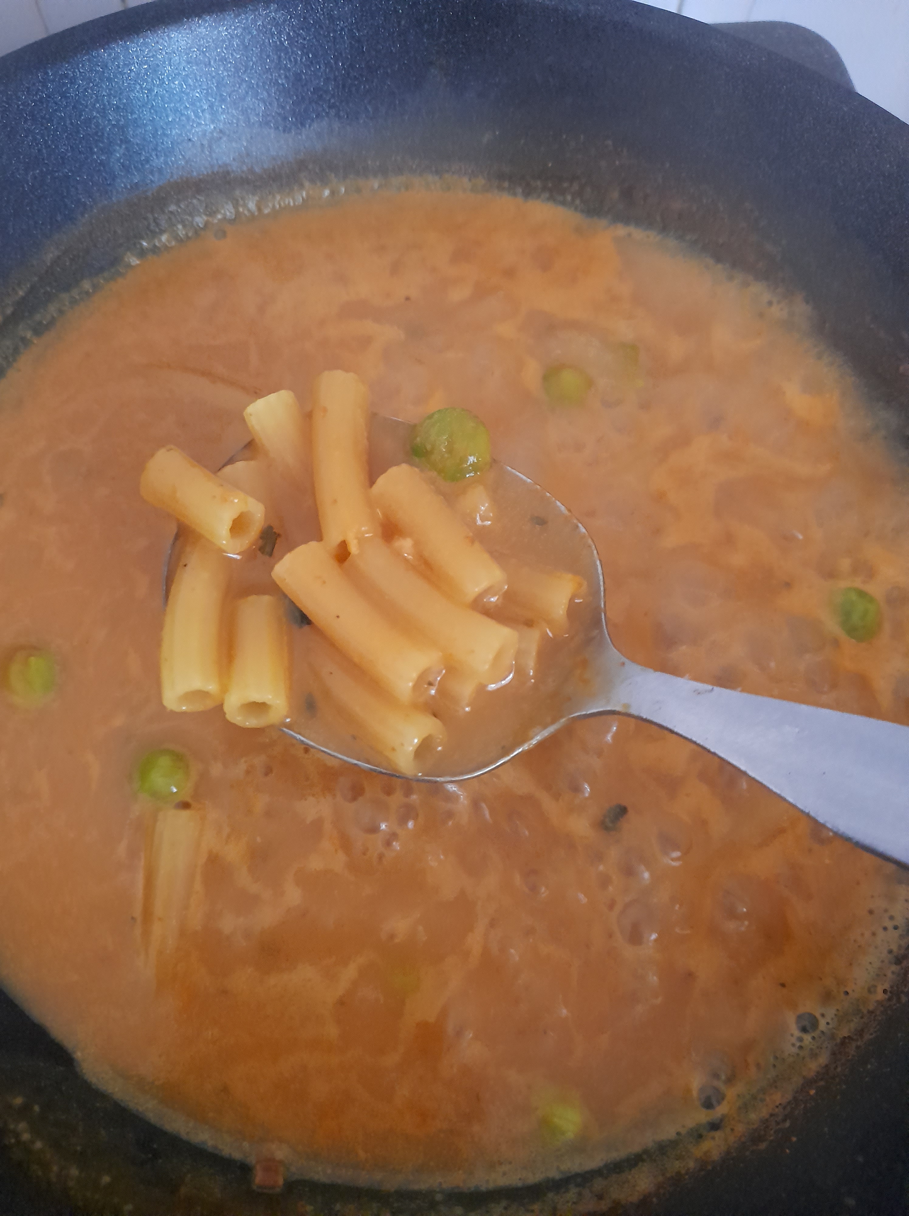 3. Allow the penne content to boil. Cook till pasta is tender and water level has reduced. Stir from time to time.