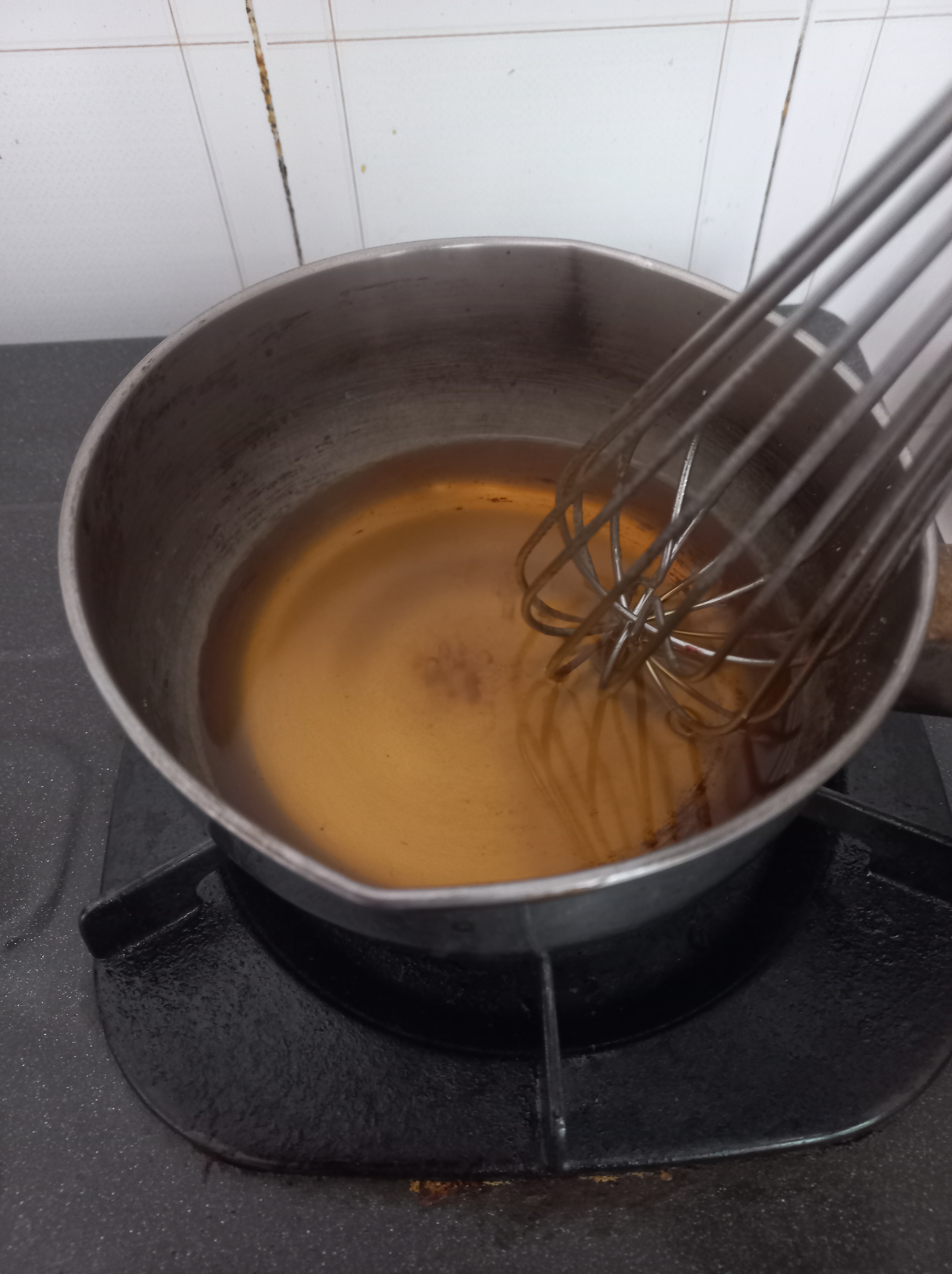 - In the same pan containing the hot pineapple gelatine, add 175 ml of very cold water. Mix.