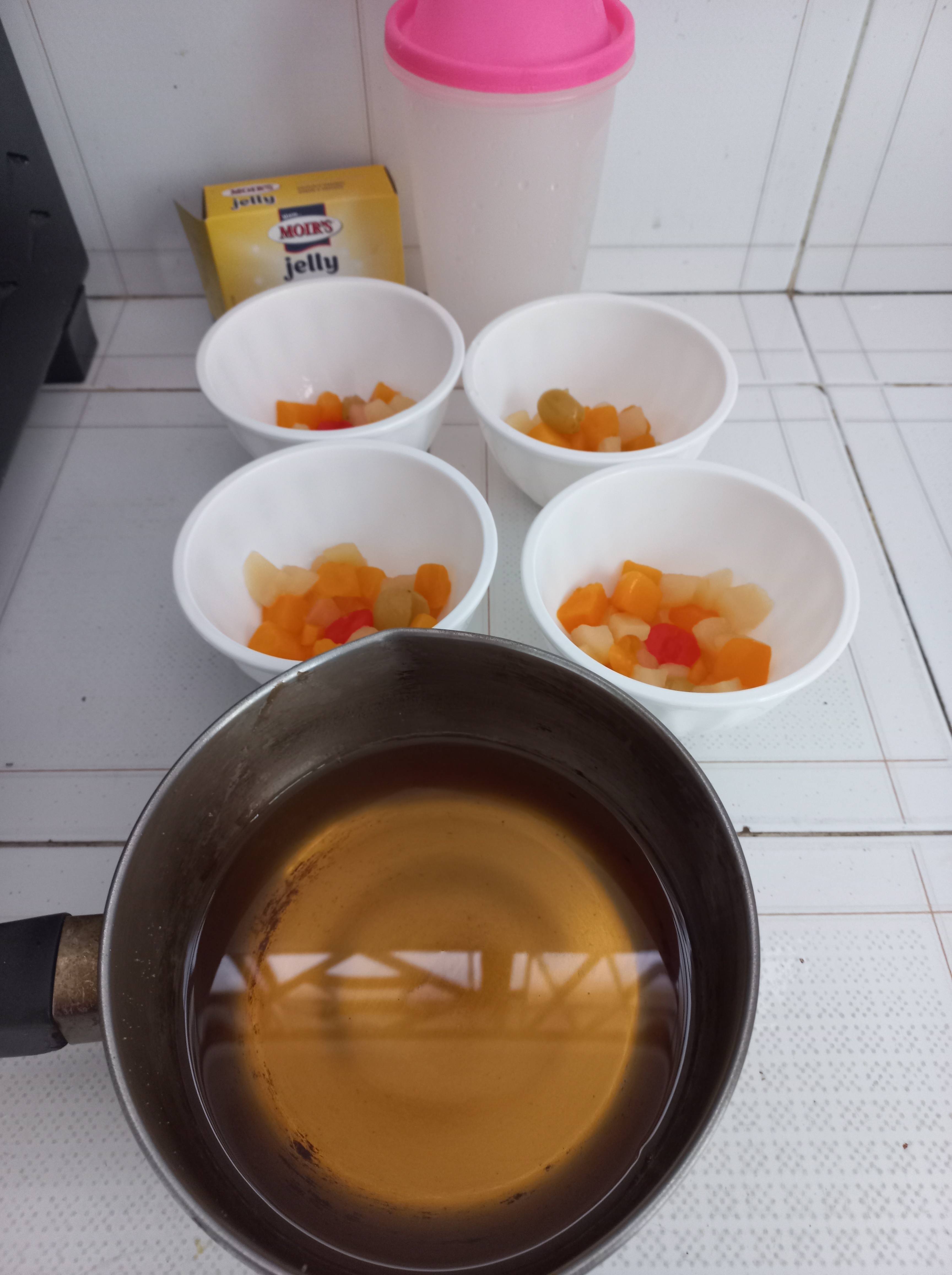 - Pour the liquid jelly in the small bowls. Allow to cool.