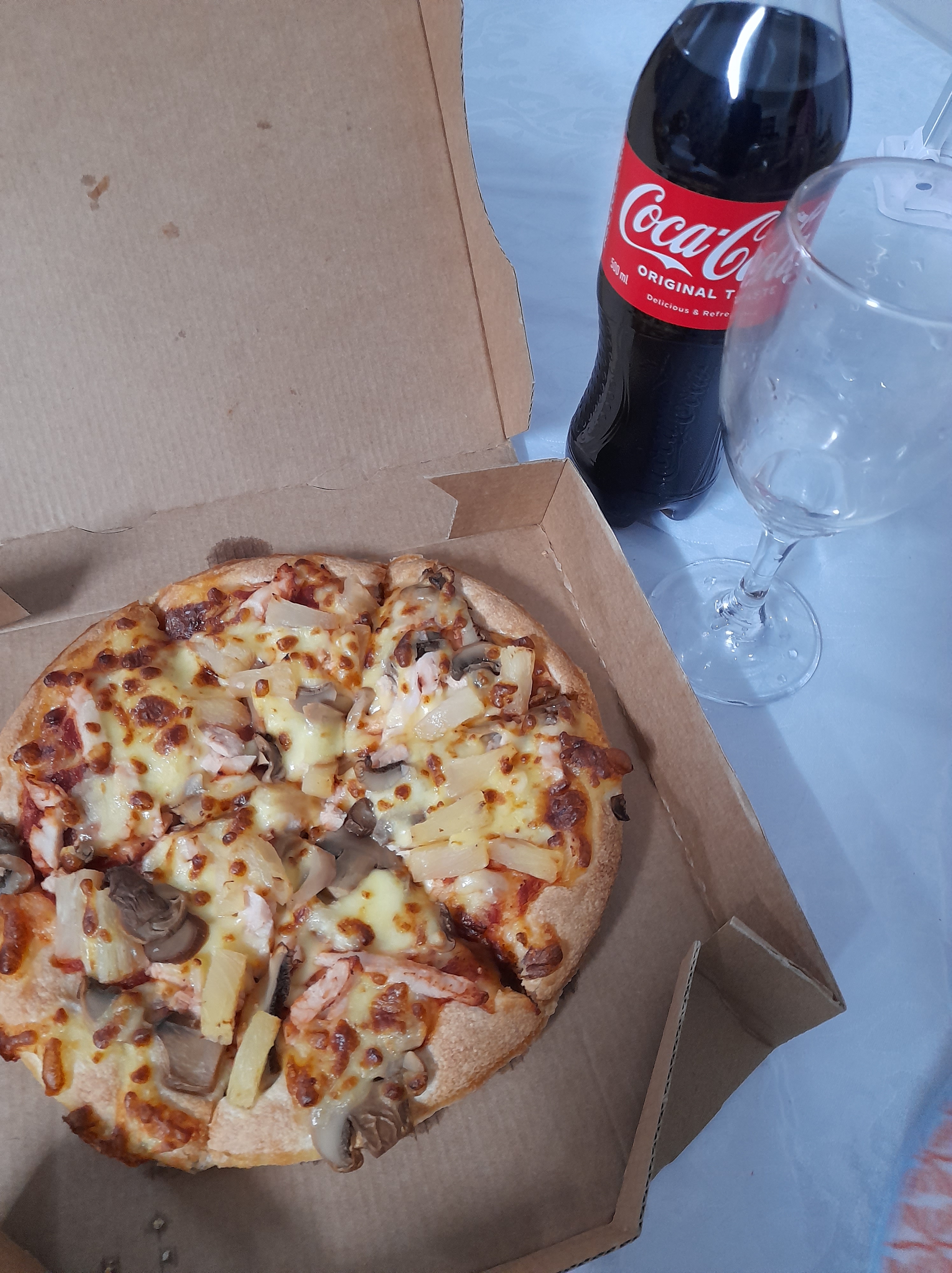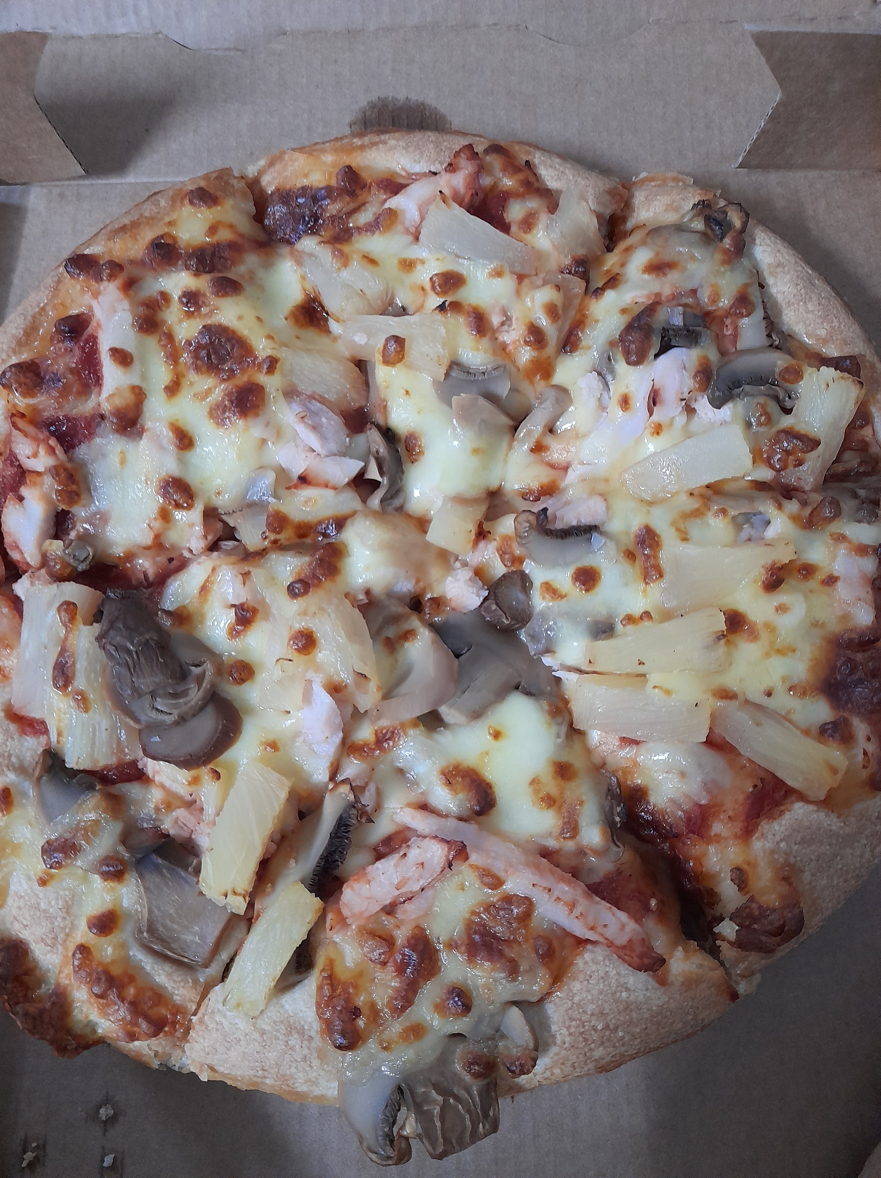 Pizza hut. Pizza country chicken Pizza country chicken with chicken, pineapple, mushroom, mozzarella! Thick crust !