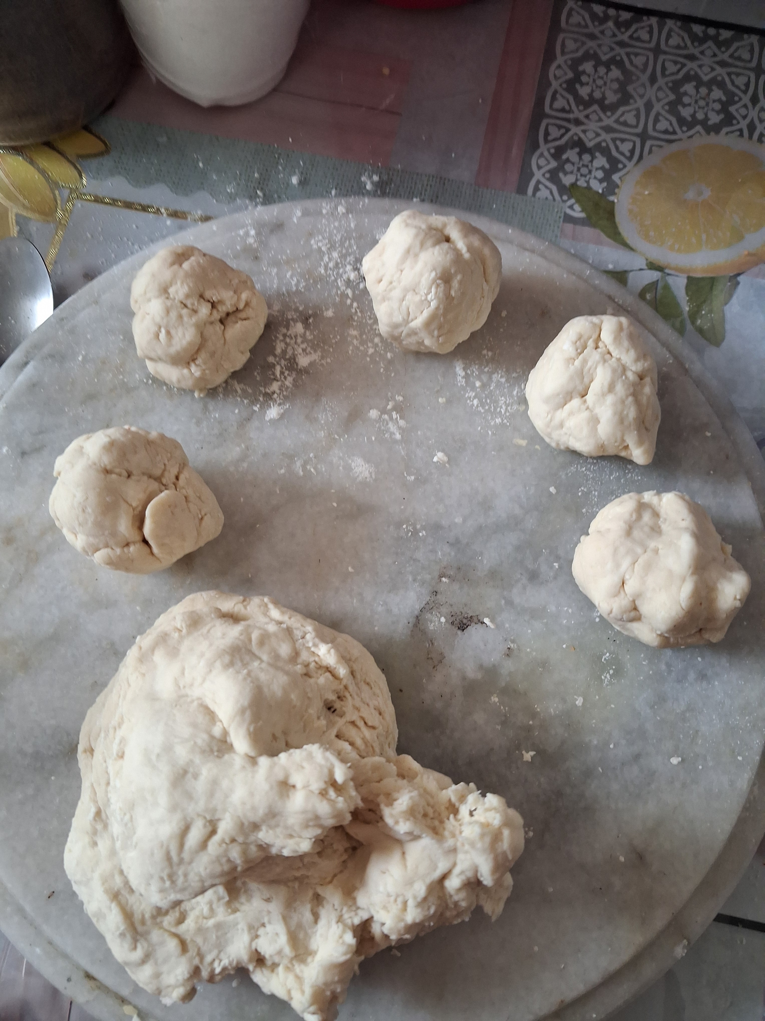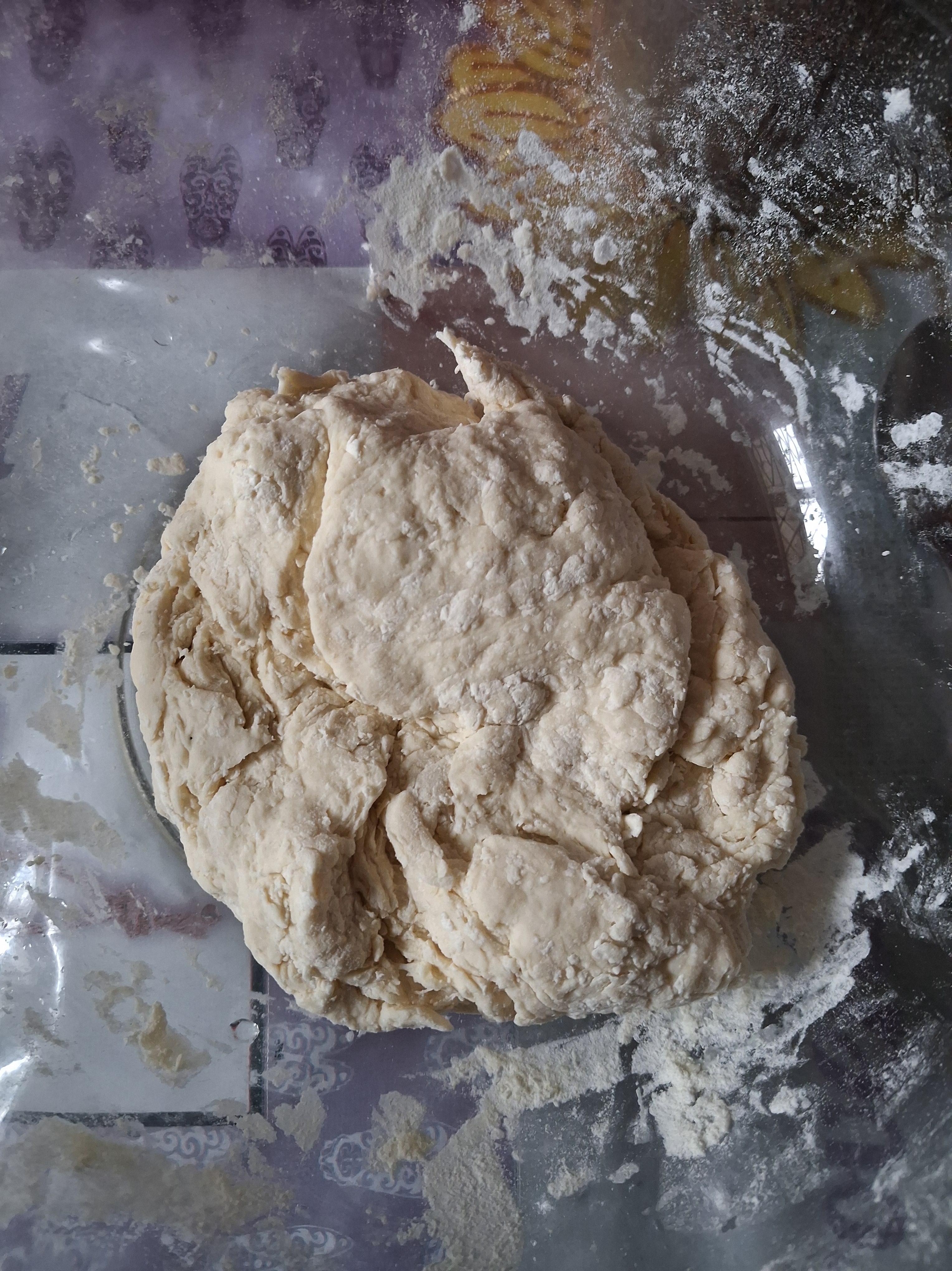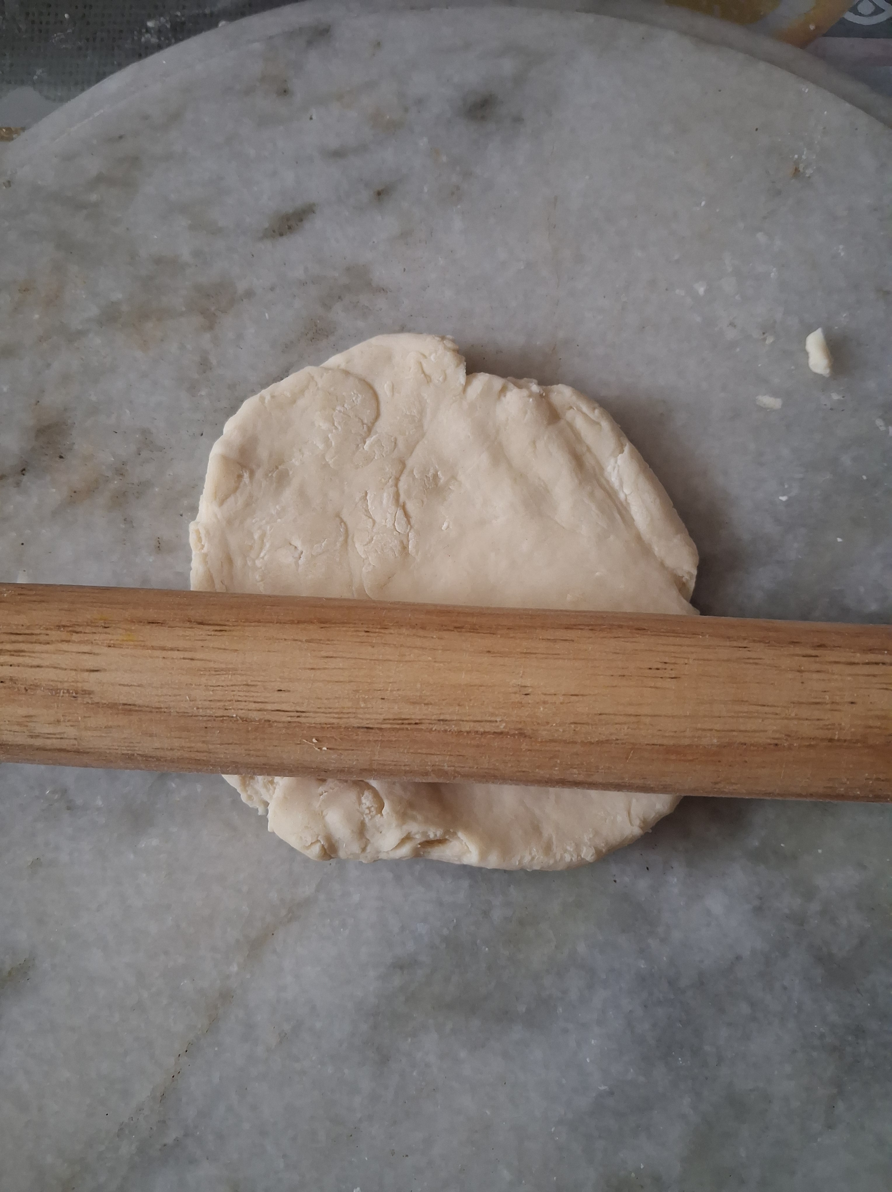 - With a rolling pin, flatten the circular shape dough. 0.5 cm thickness.