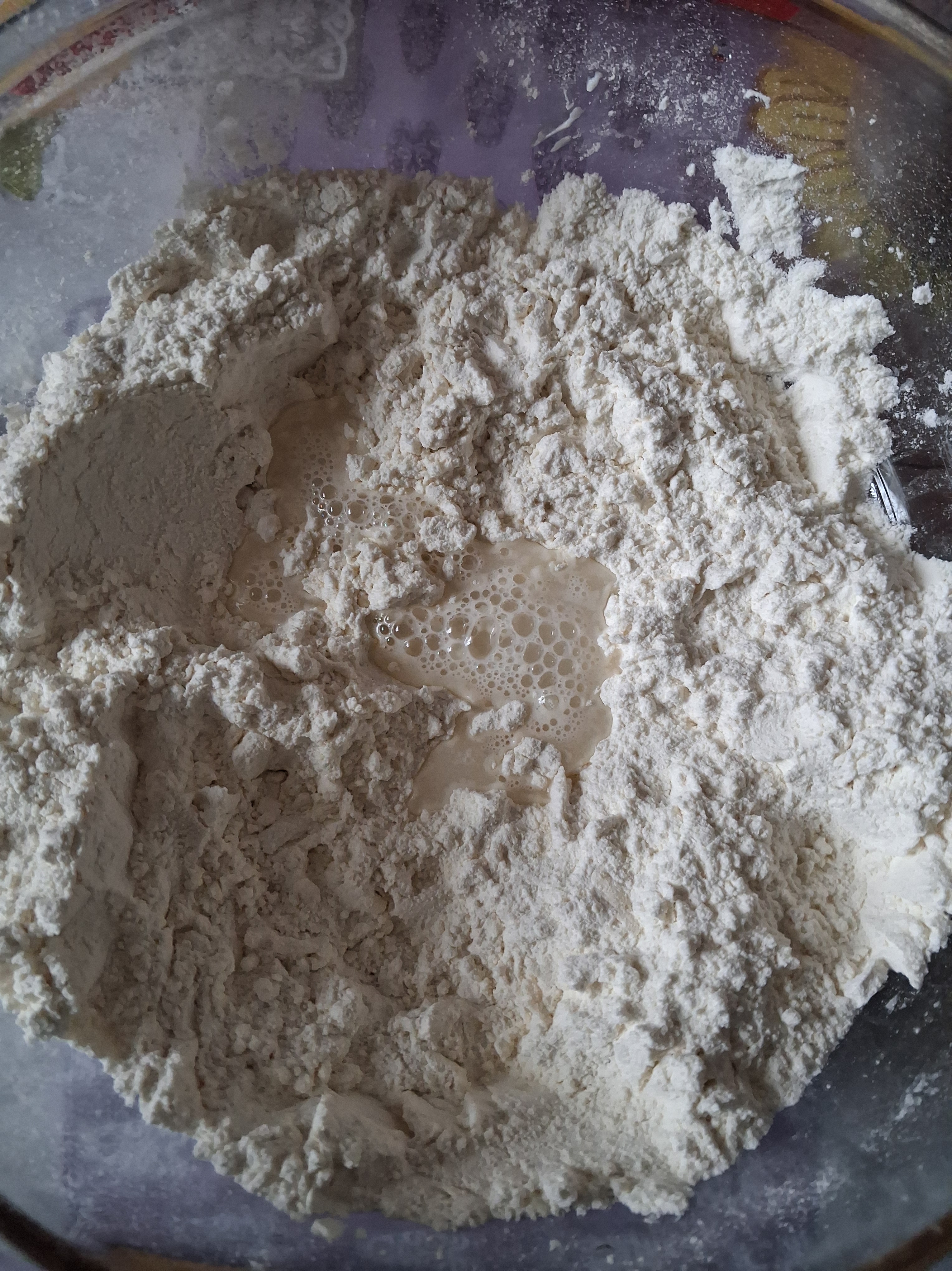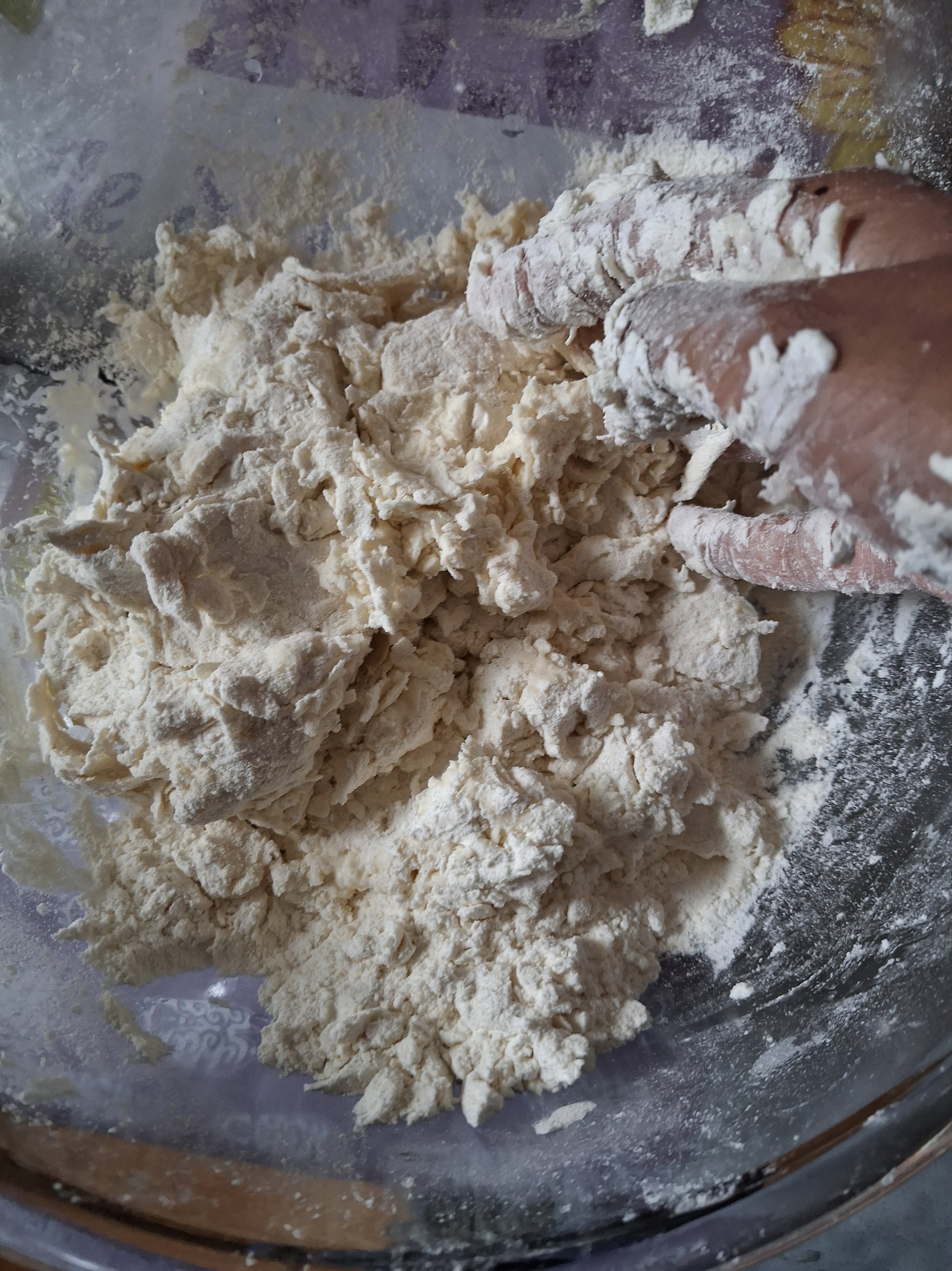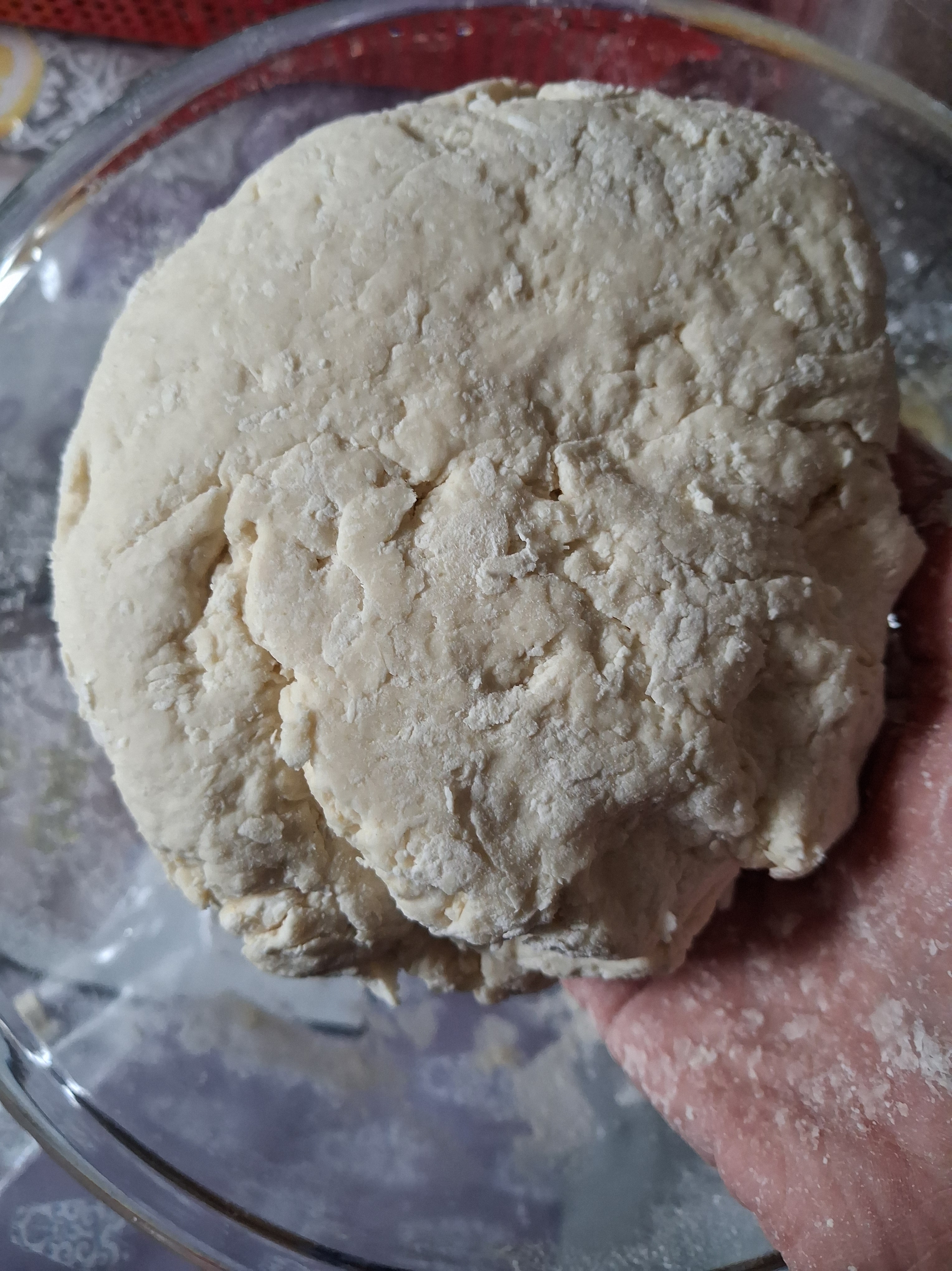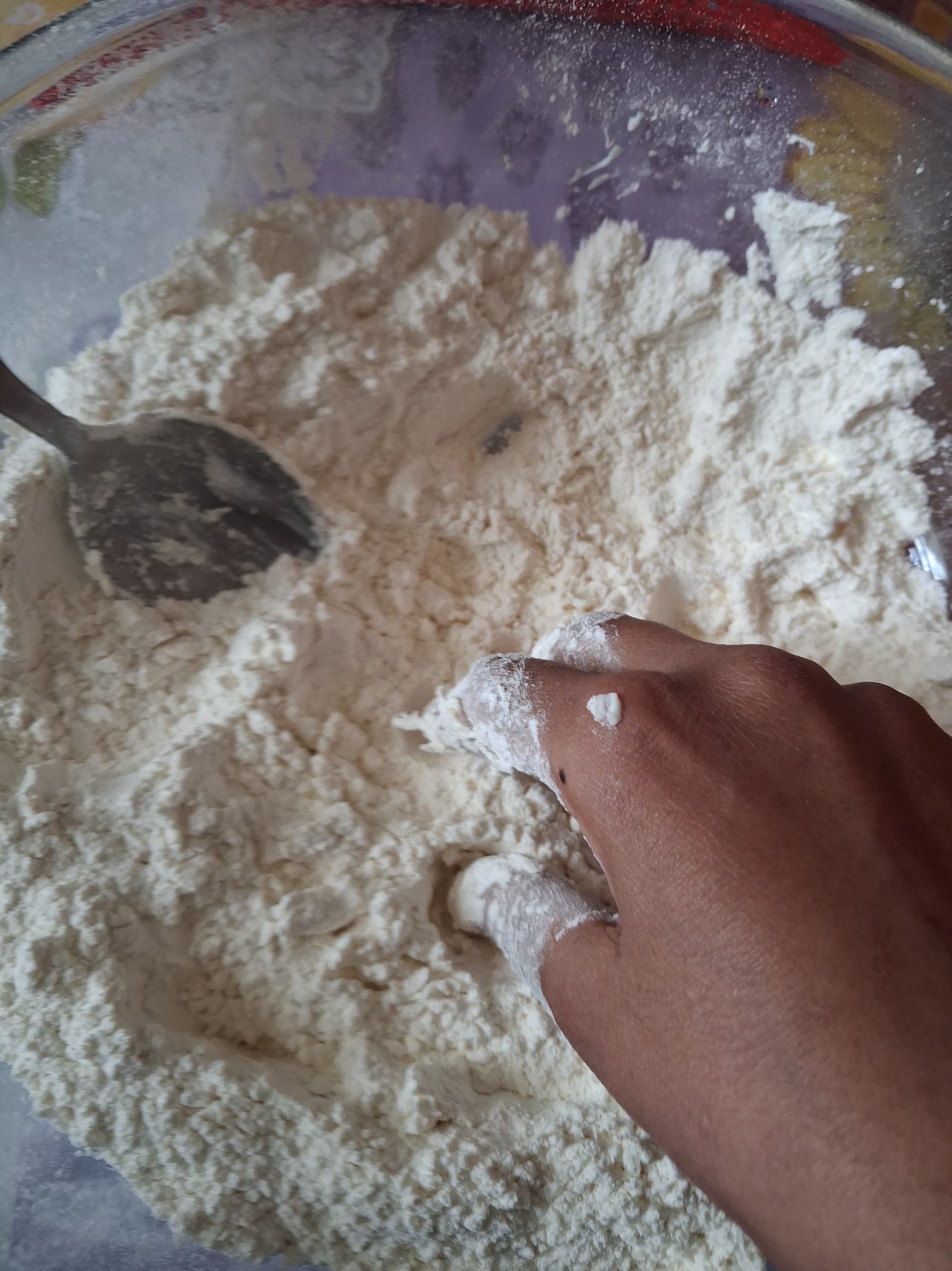 - With a rolling pin, flatten the circular shape dough. 0.5 cm thickness.