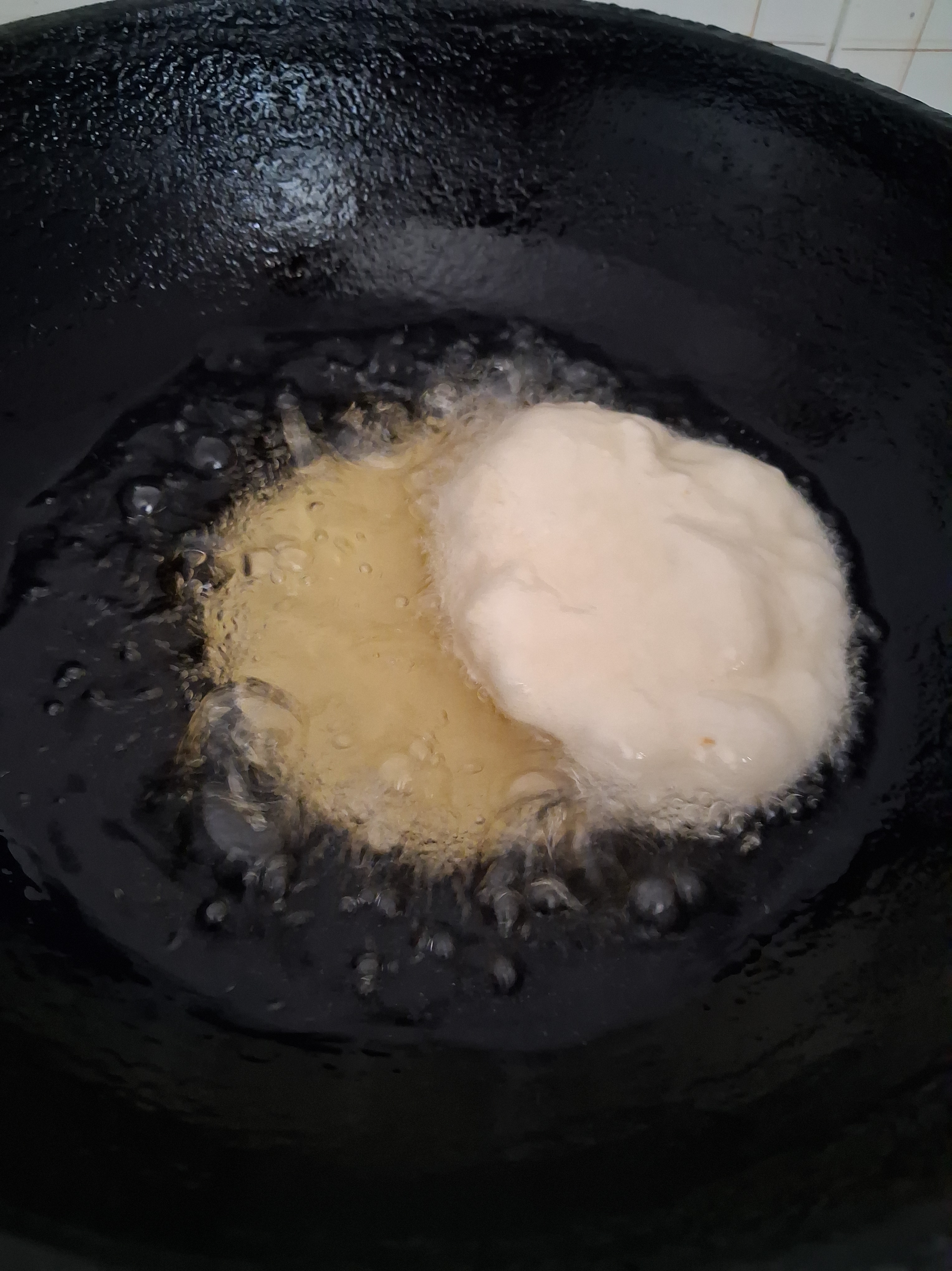 - The puri’s should be cooked on both sides for 1 minutes. The puri will also come enlarged during frying.