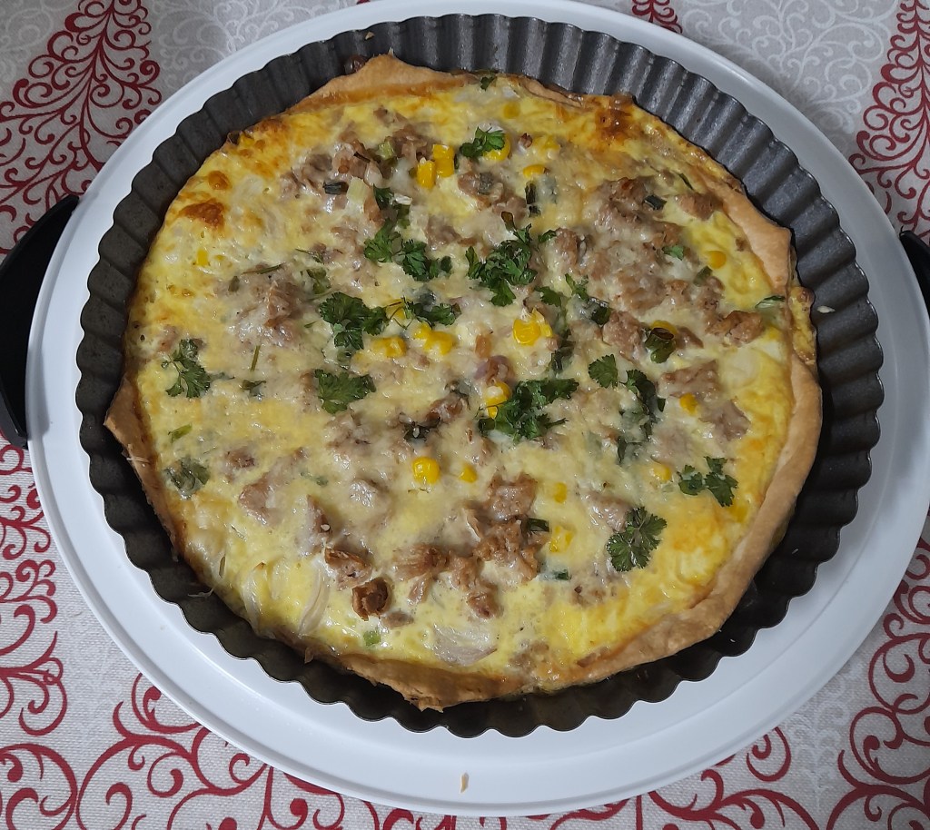 10. Cook the quiche for 25 minutes or more over 180 degrees. Insert a wooden stick to check if it comes out clean.