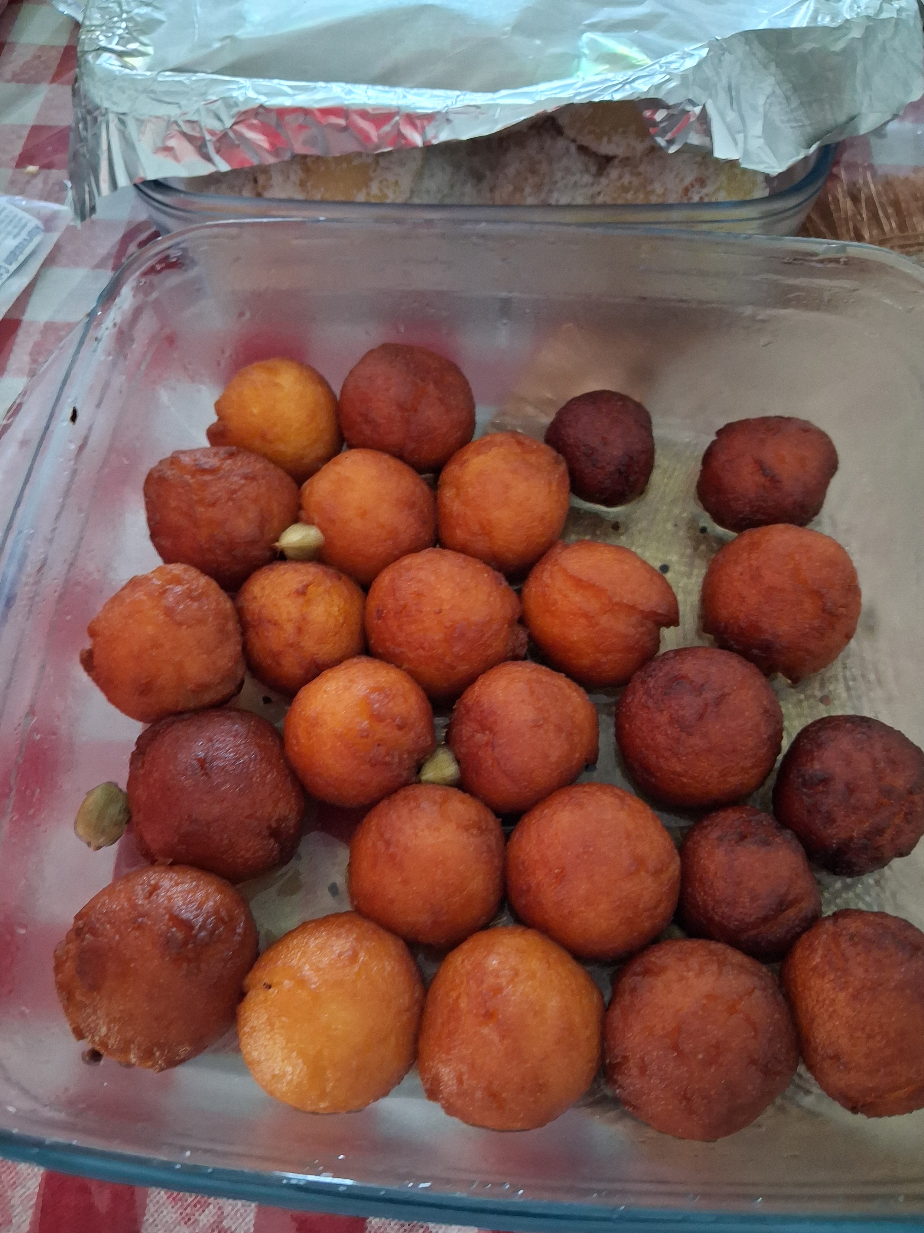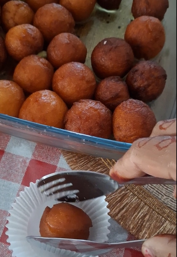 On low/medium heat, fry each rasgulla balls.