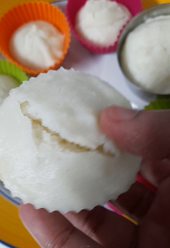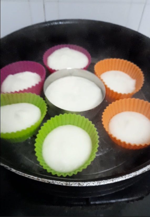 3.Insert small portion of batter in silicon mold. Place the molds to steam in a large pan.