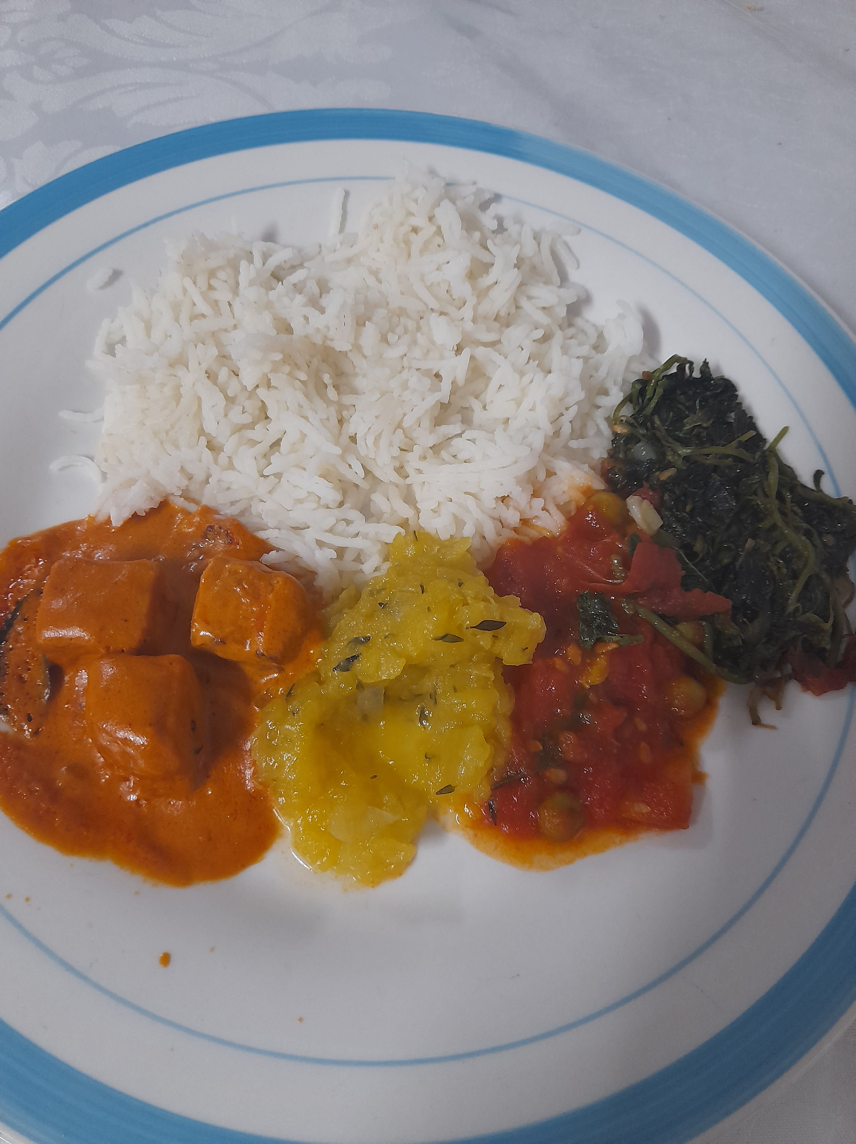 - Once leaves and tomatoes are cooked, remove brede malbar from heat. Serve with rice and curry.