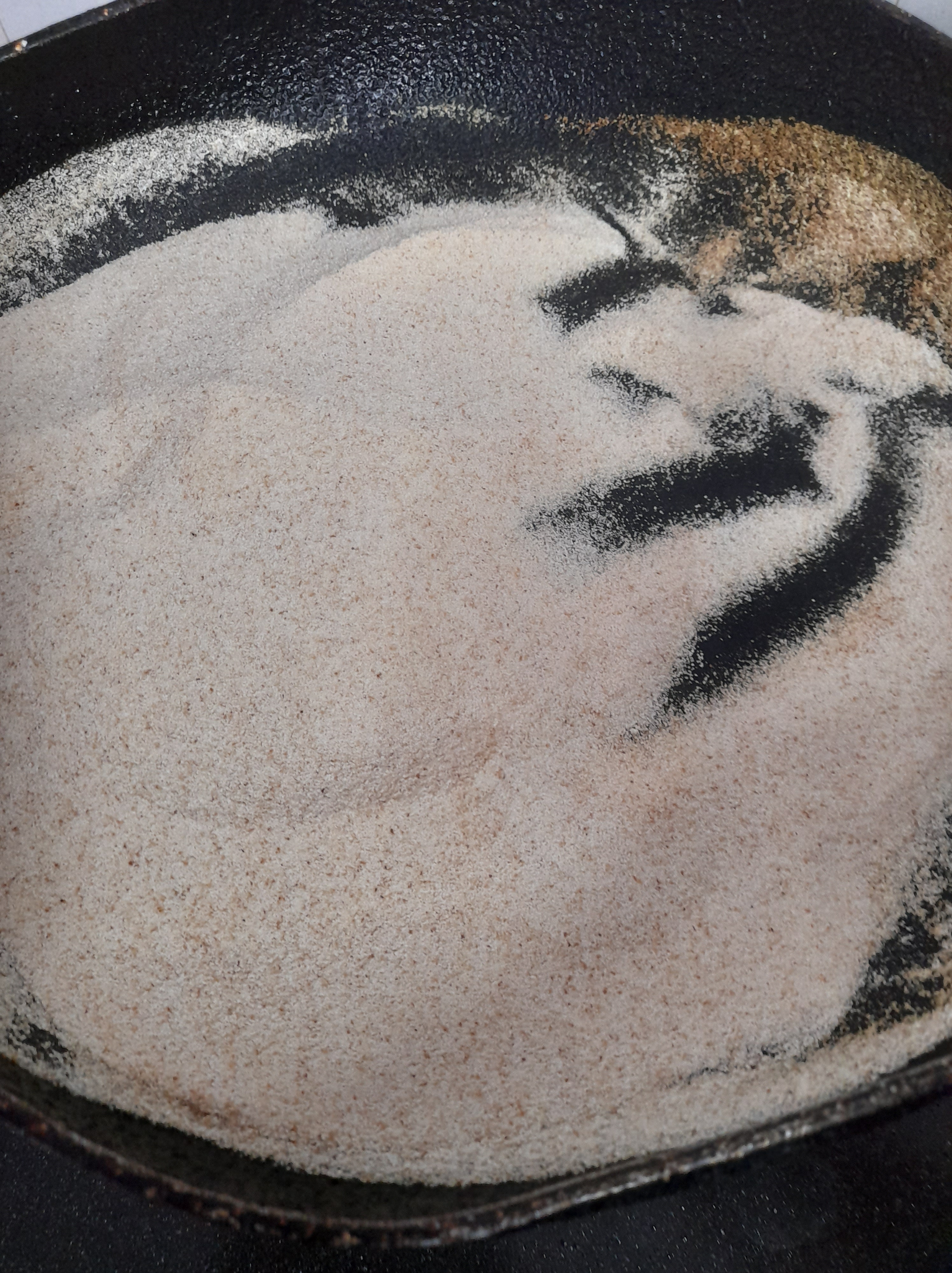 7.Little by little add the roasted semolina to the milk by stirring and repeat till all milk evaporates.