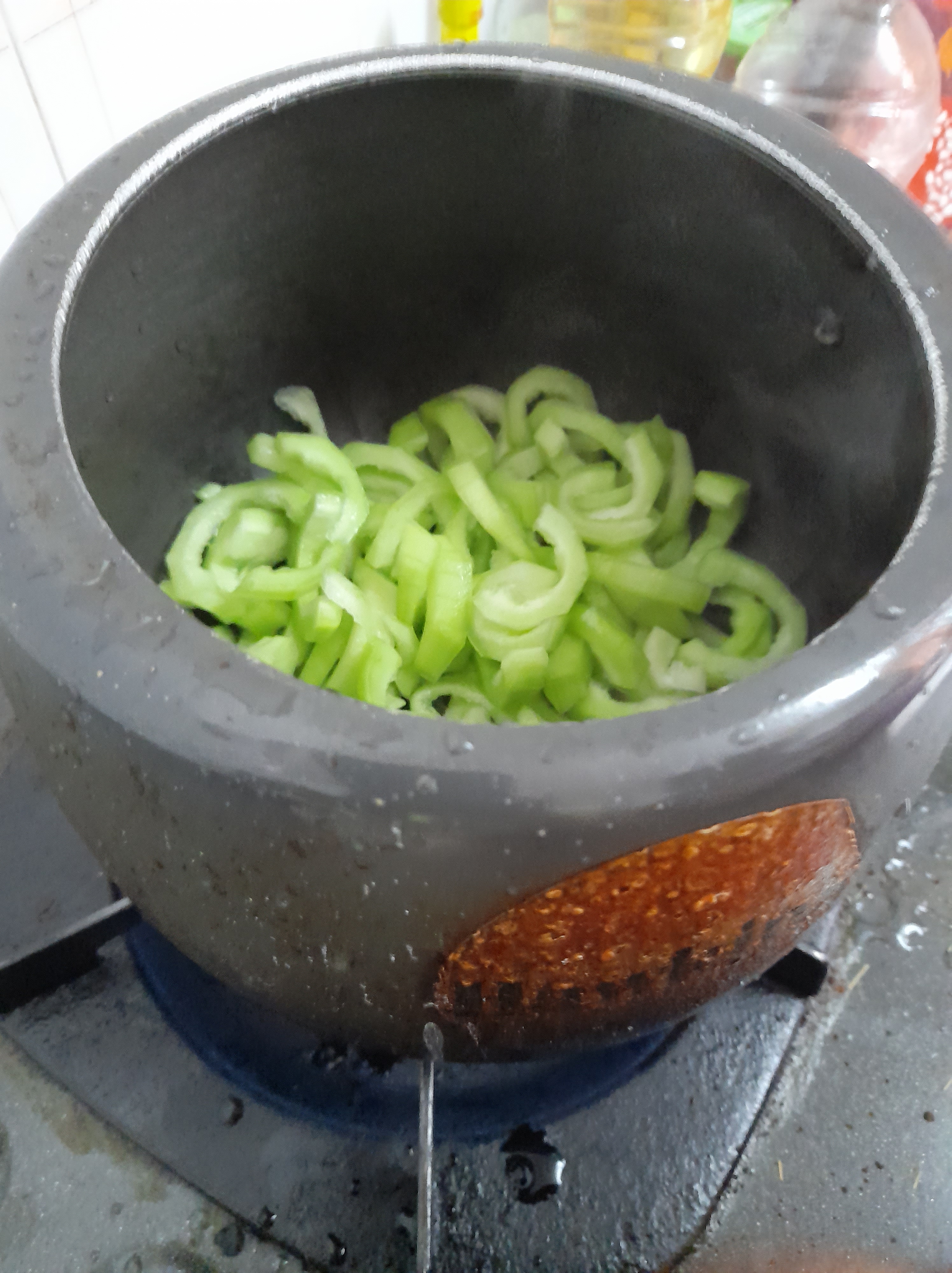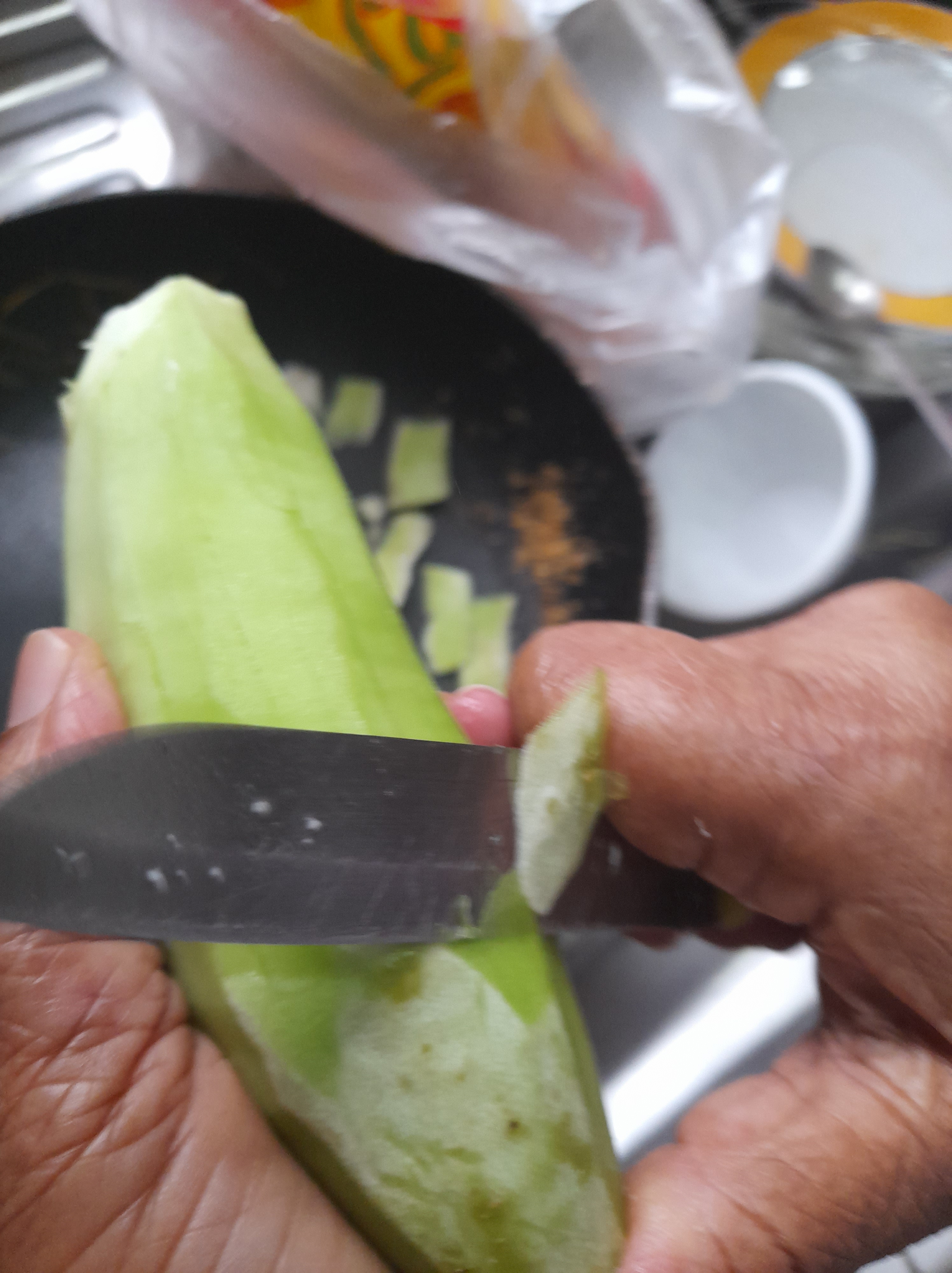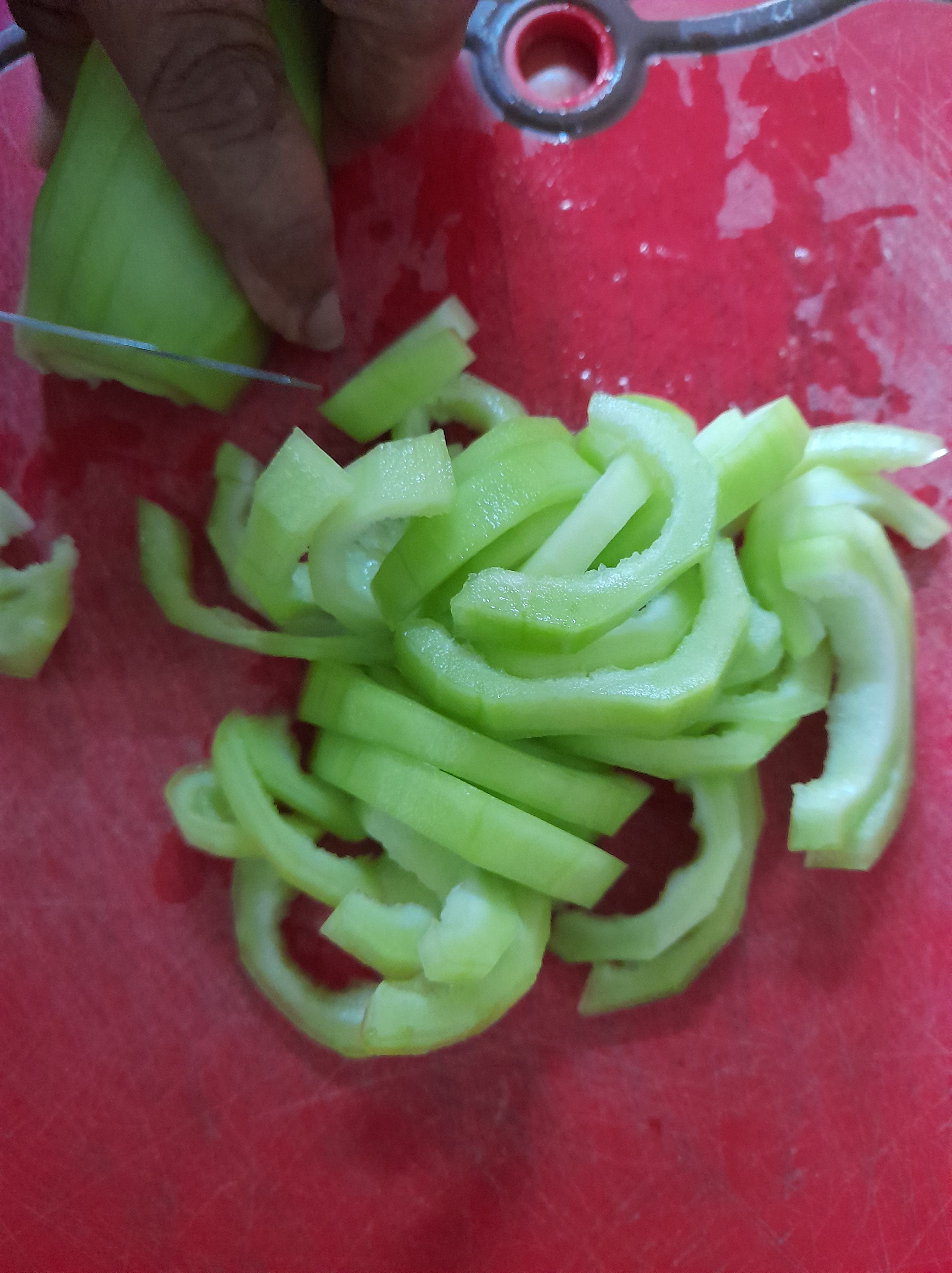 - In a pressure cooker, add oil. Fry an onion in medium heat.