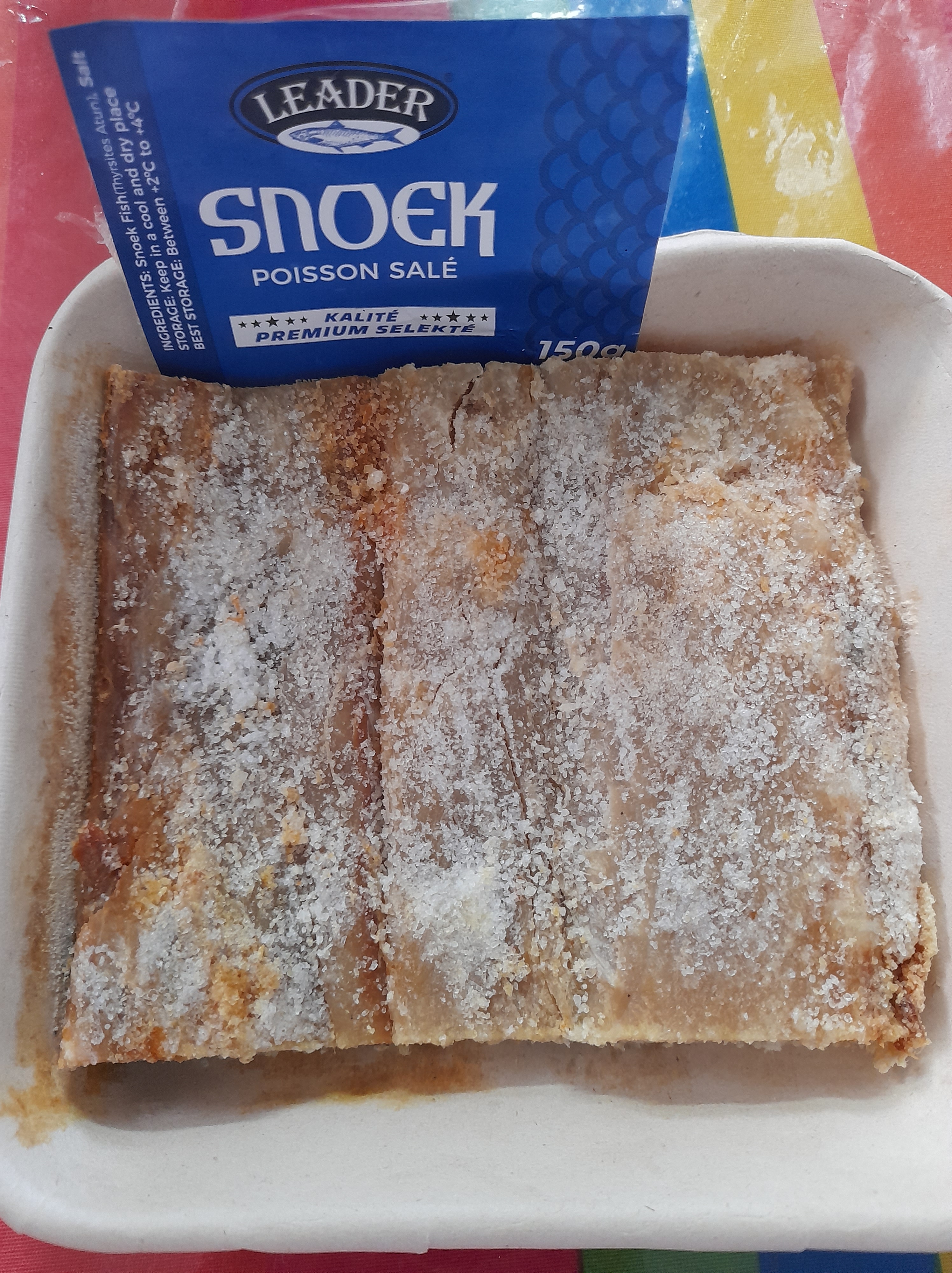 - In a pan, add the whole snoek fish and allow boiling for 10 minutes.