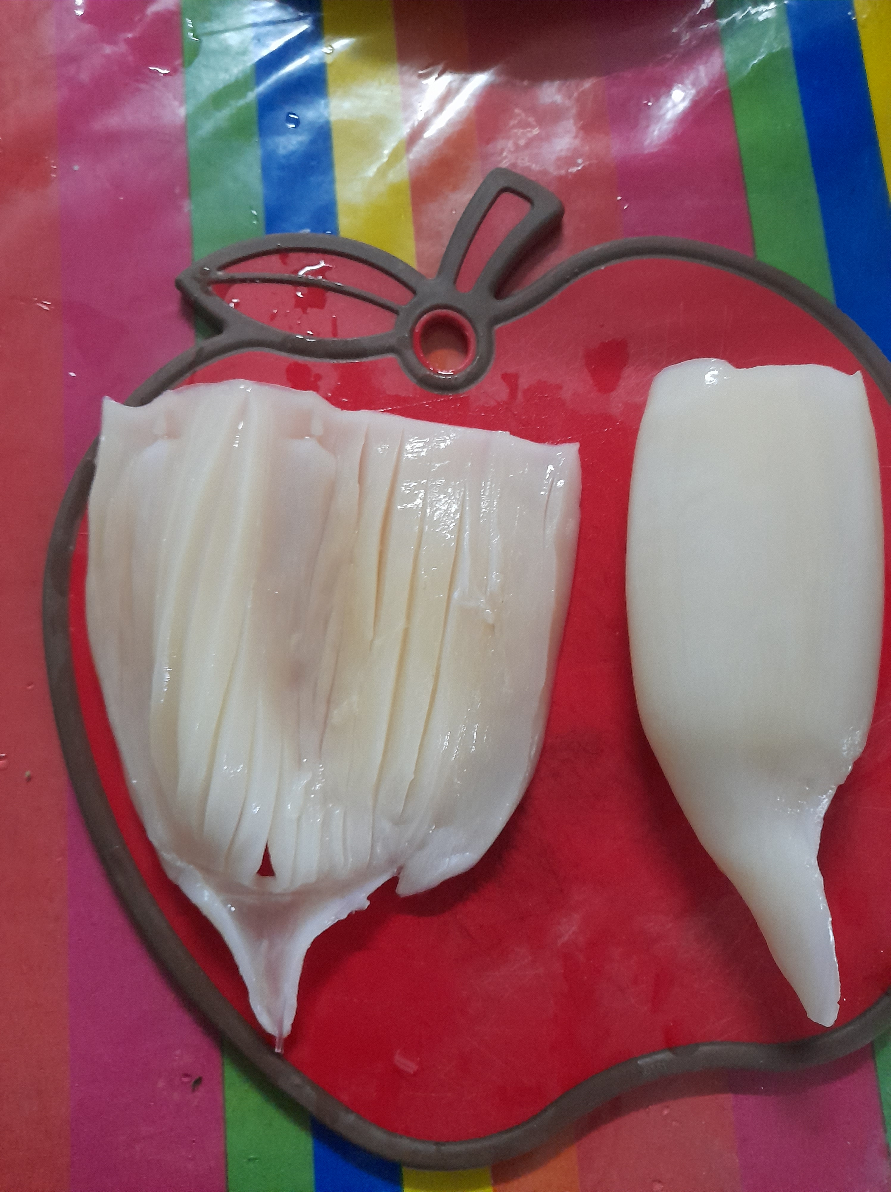 - Cut thin lines inside the squid diagonals.