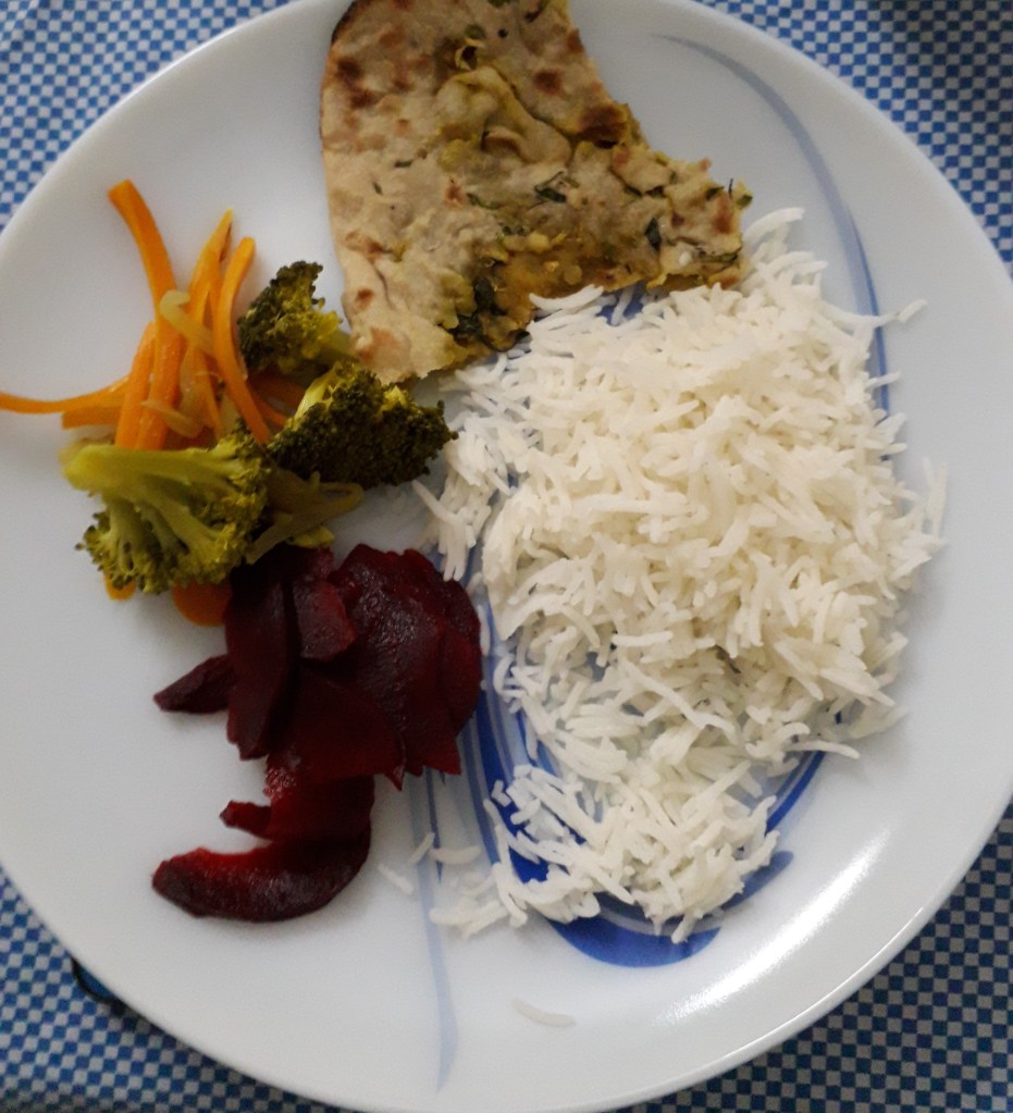 4. In a pan, stir fry carrot and broccoli, add some water and some salt. Cook till water has evaporated and vegetables are dry.