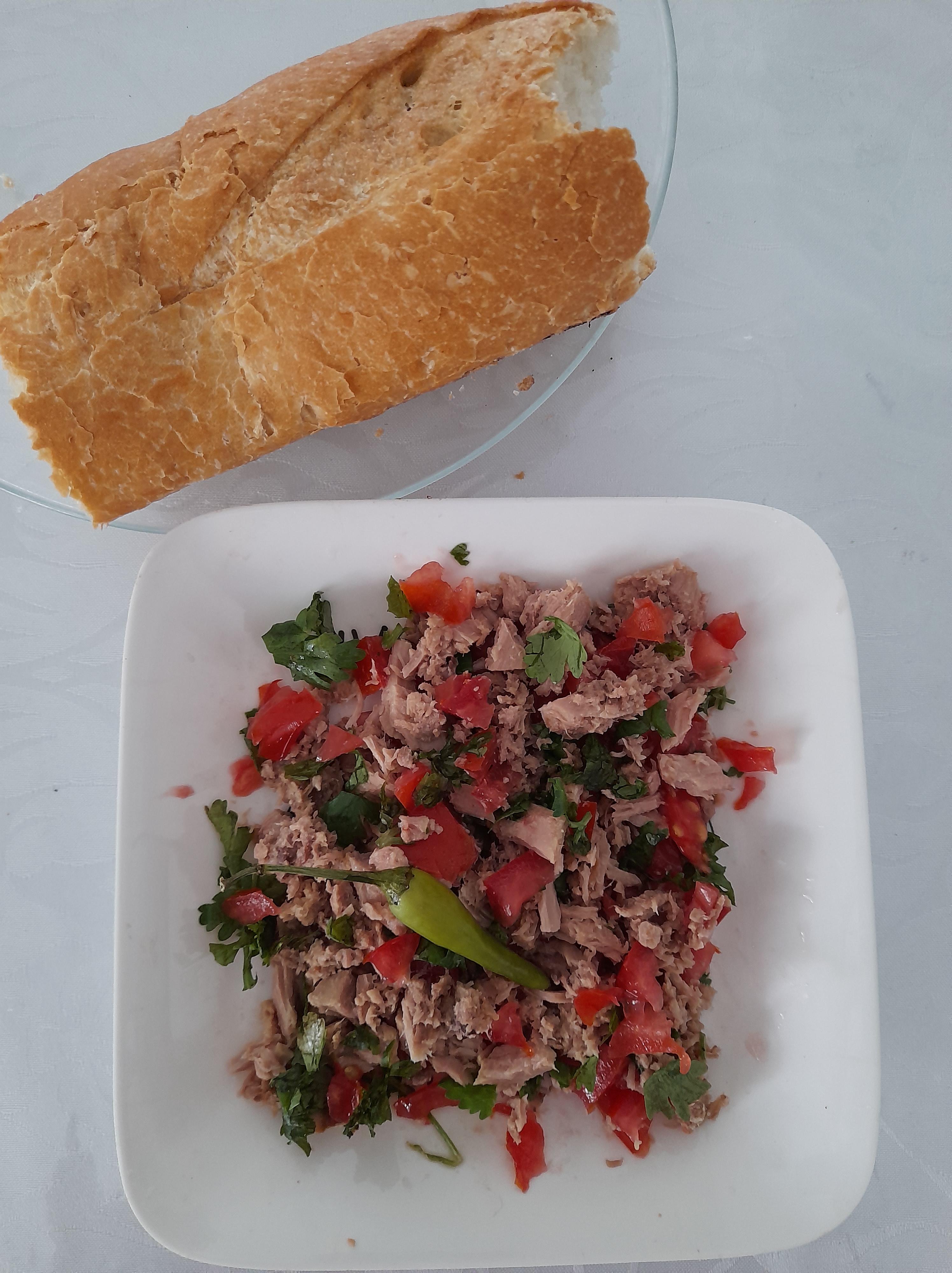 - Add chunks of green chili in the tuna mix salad.