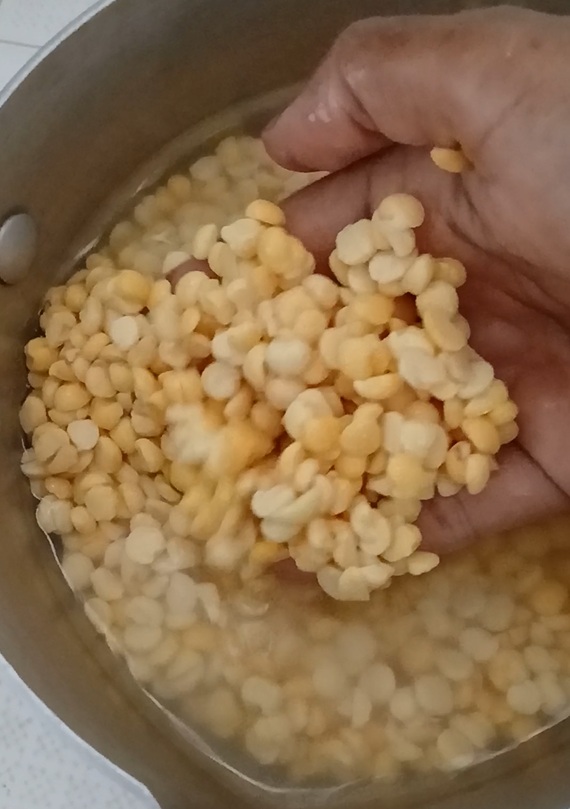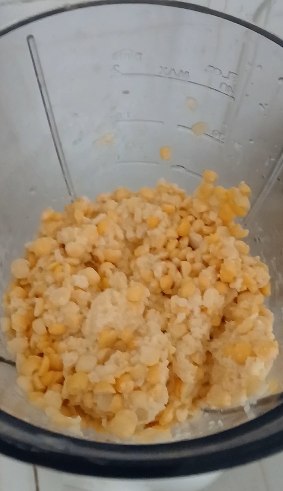 2.Place some soaked yellow split peas in grinder and ground to make paste. Repeat in small batches.